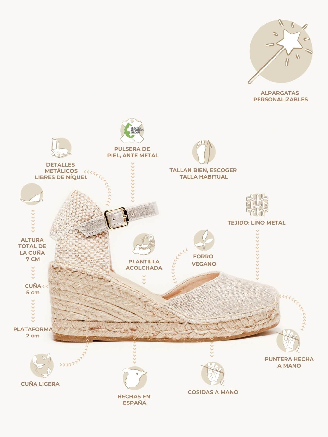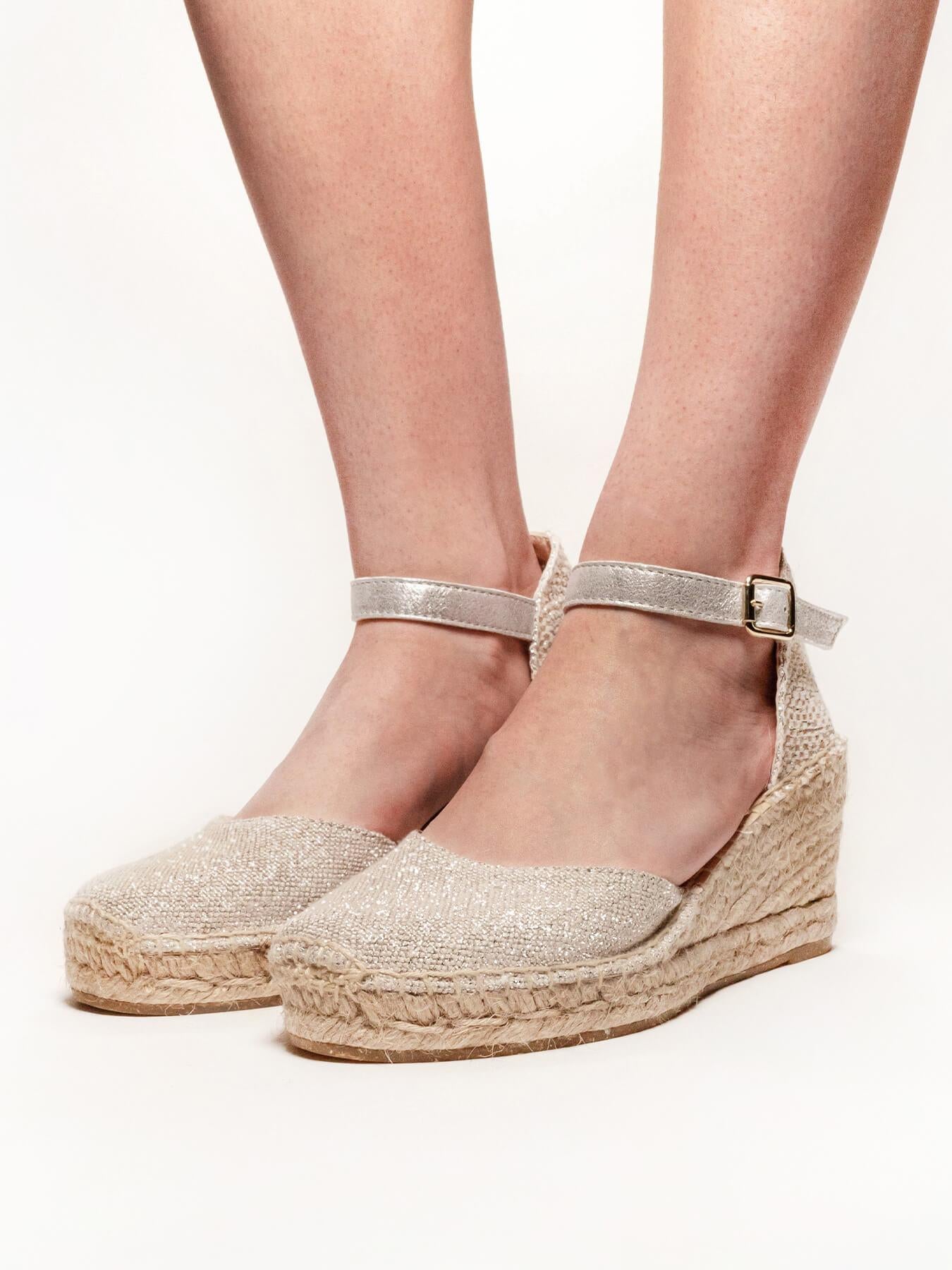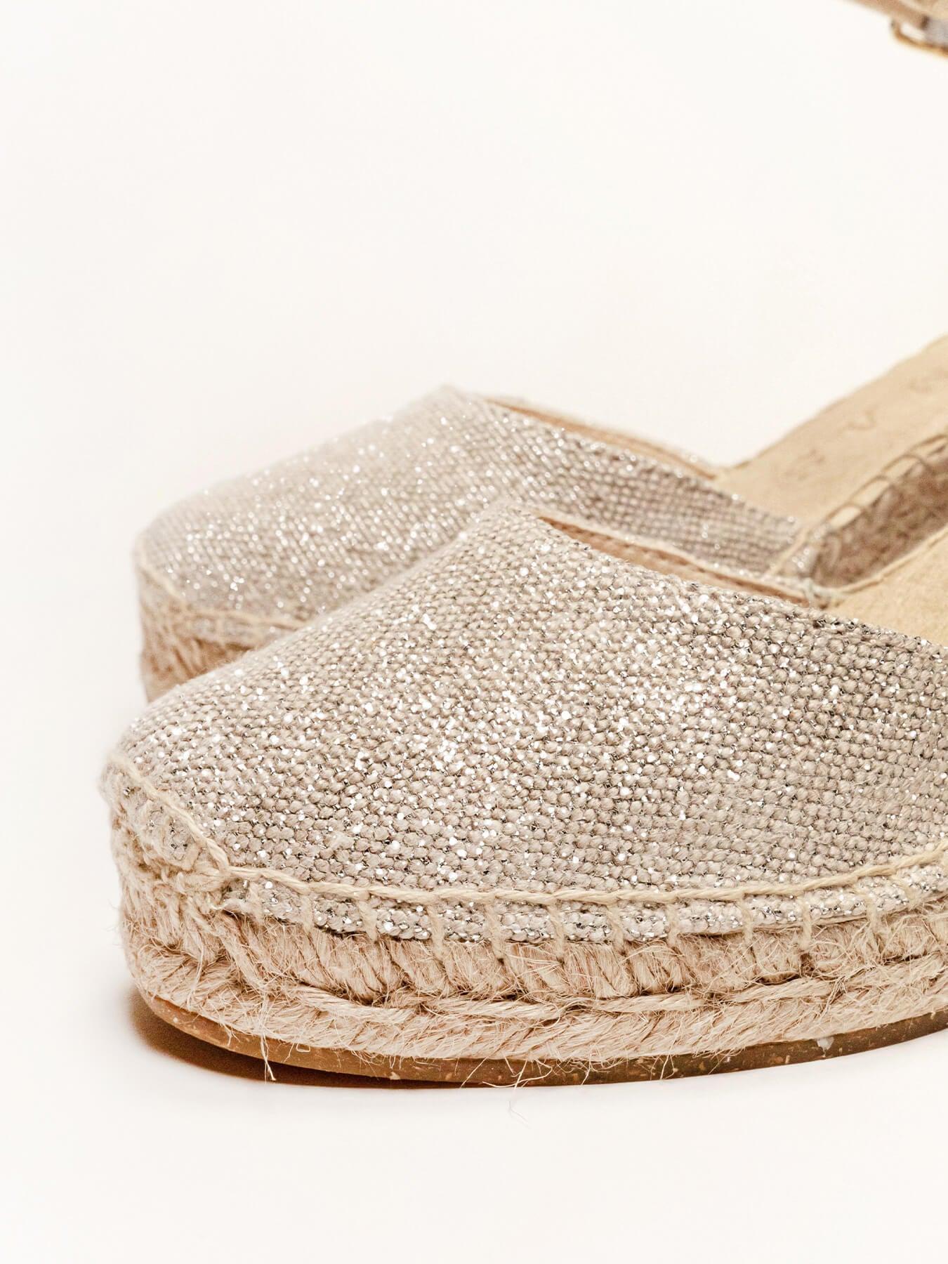 Sandália Anabela Média Dalia Linho Metalizado Prata