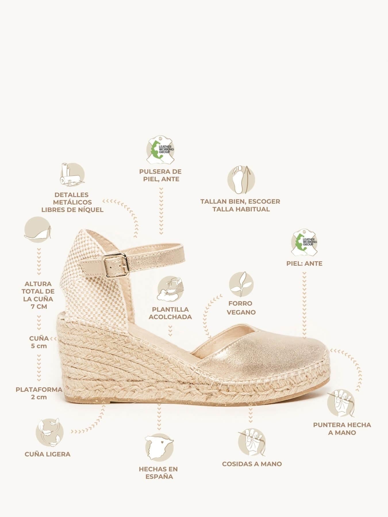 - A Camurça Metal da alpargata Jara está certificada pelo Leather Working Group (uma organização que promove práticas ambientais sustentáveis)