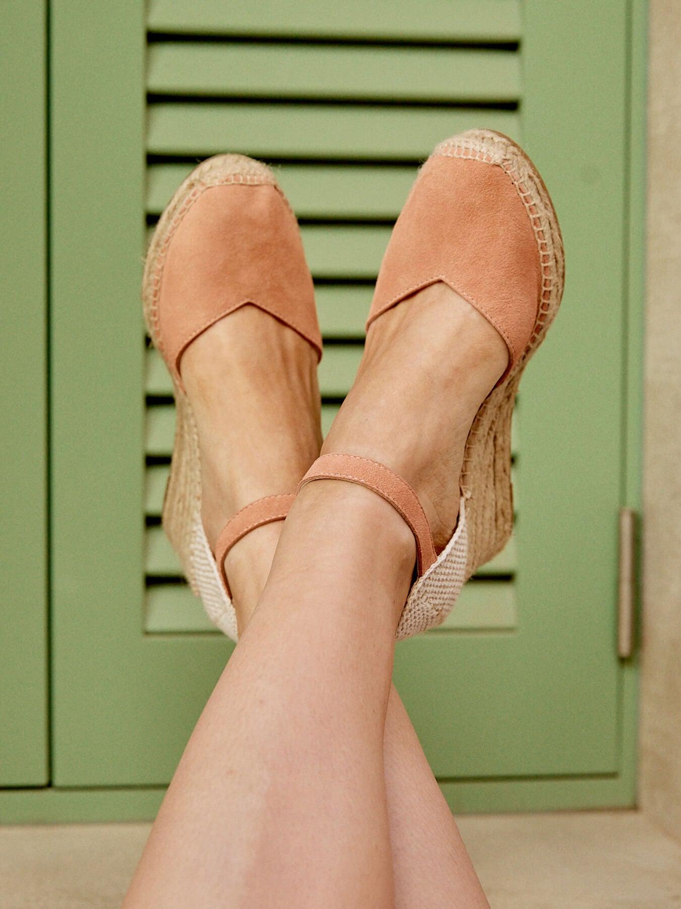 Sandália Anabela Média Jara Camurça Laranja Clara