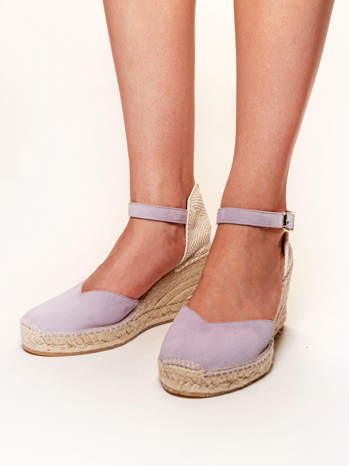 Sandália Anabela Média Jara Camurça Lilás