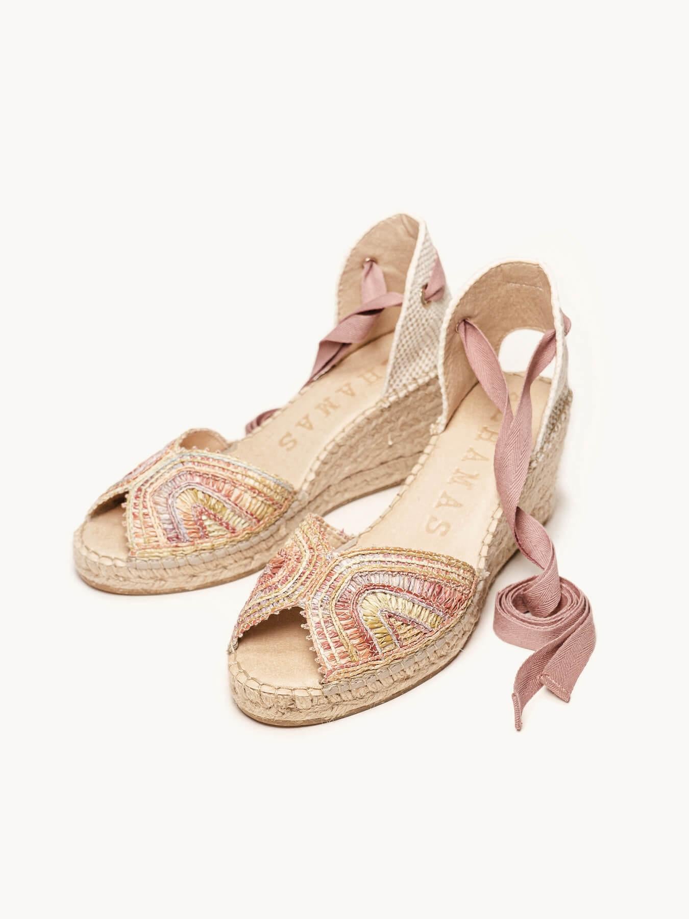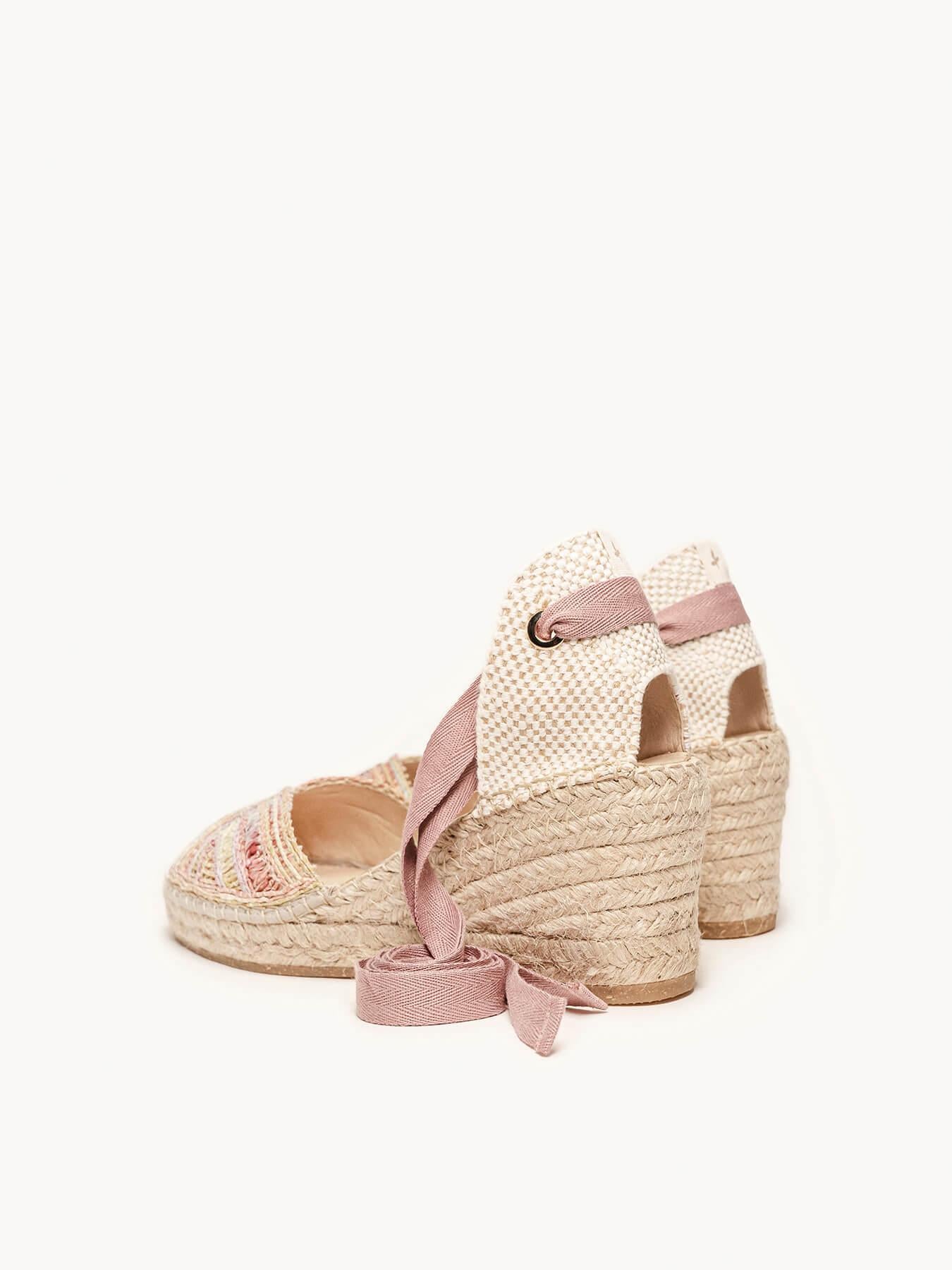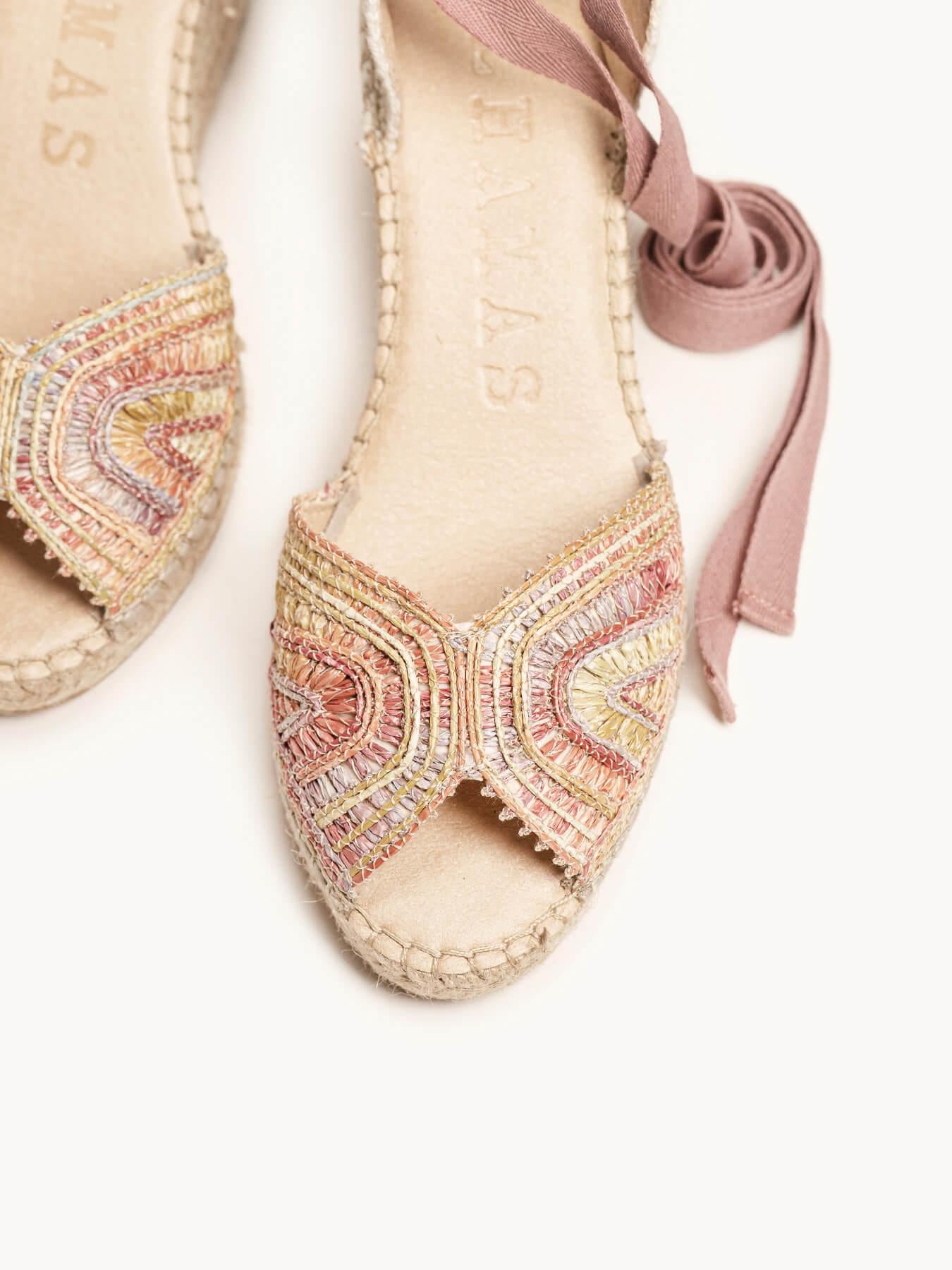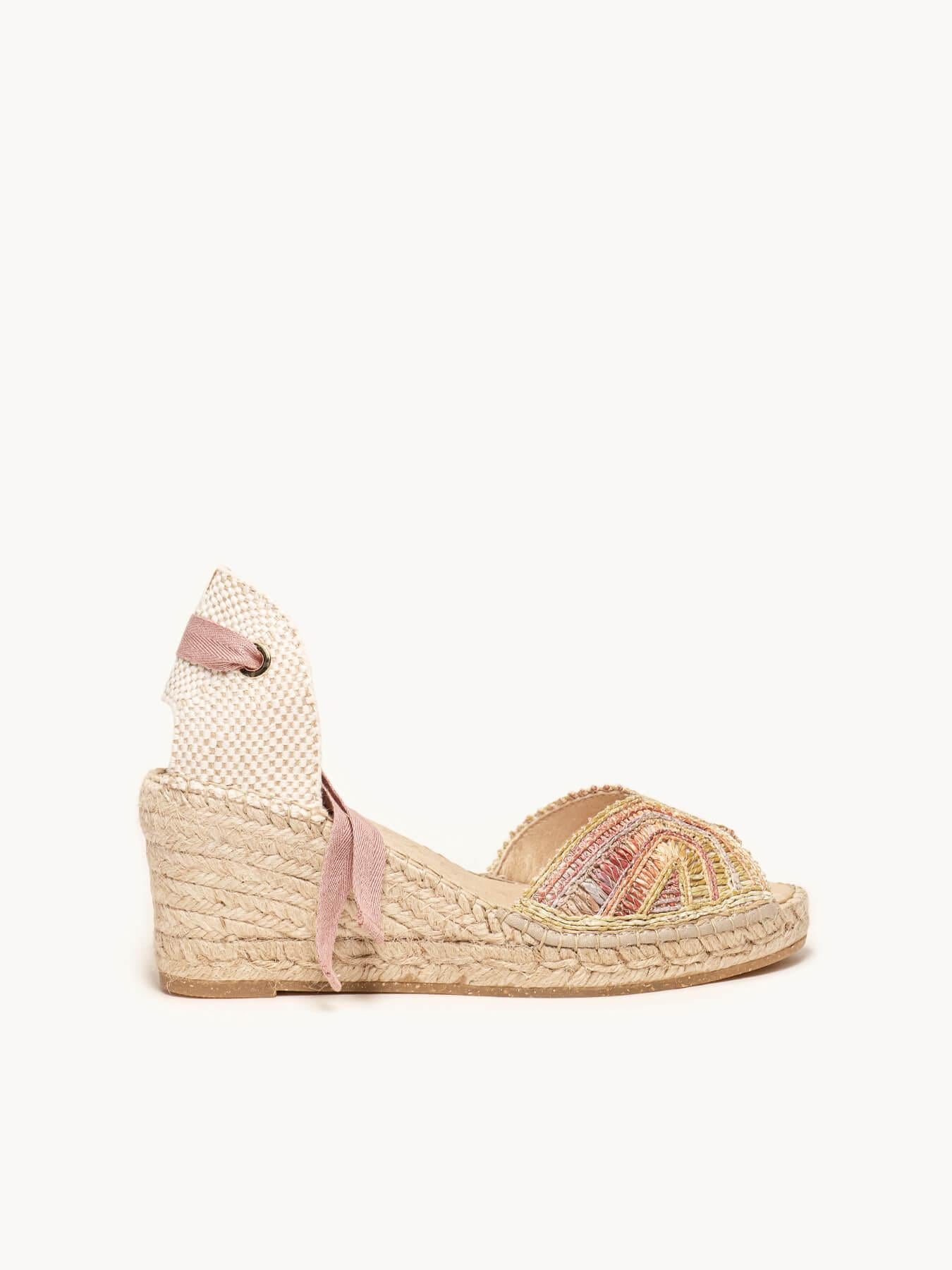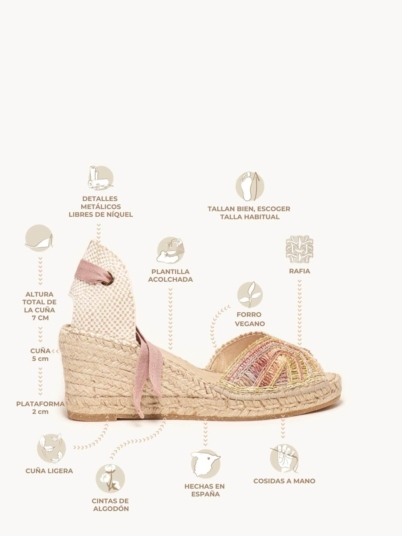 Sandália Anabela Média Lirio Ráfia Rosa Claro