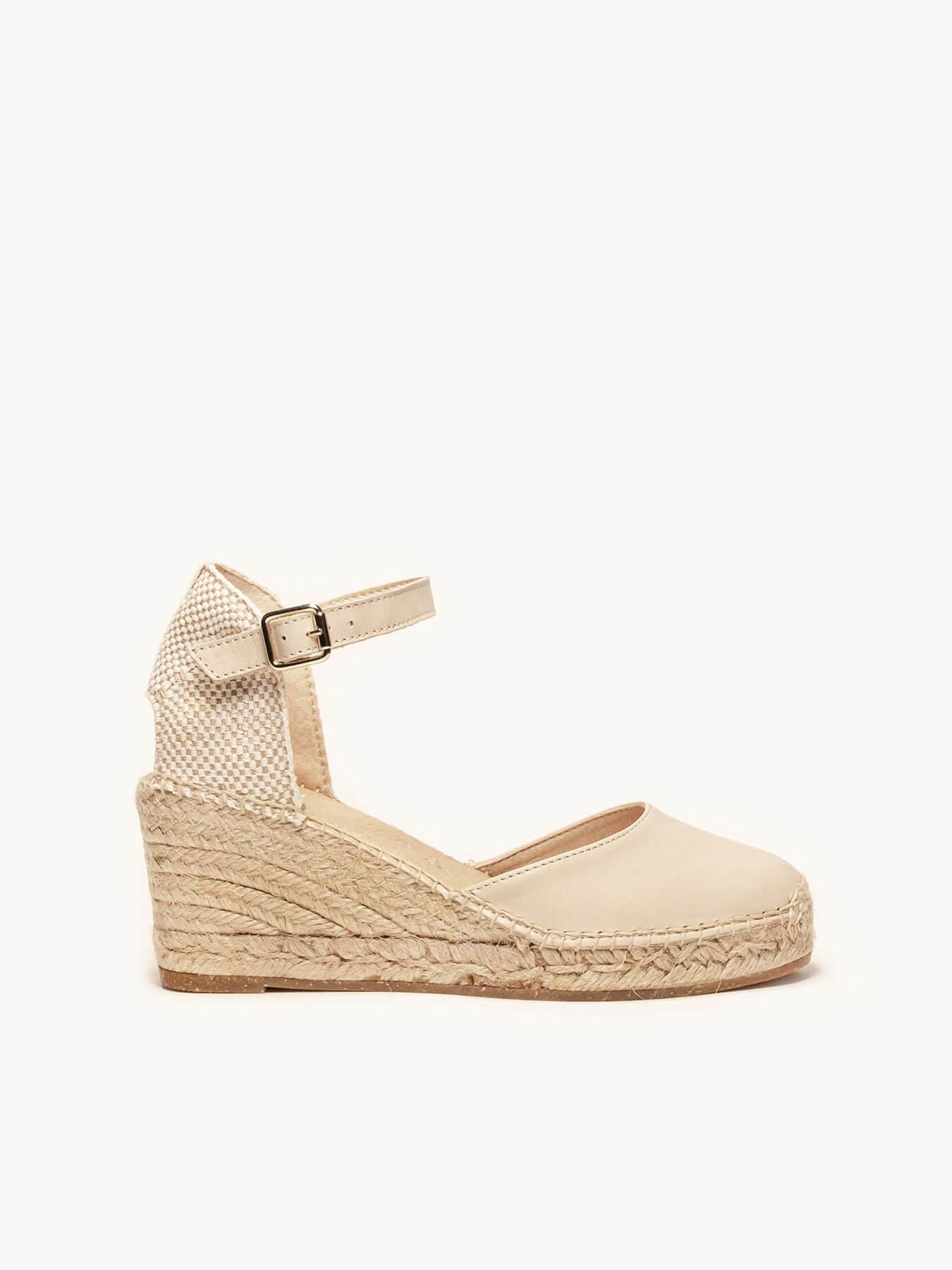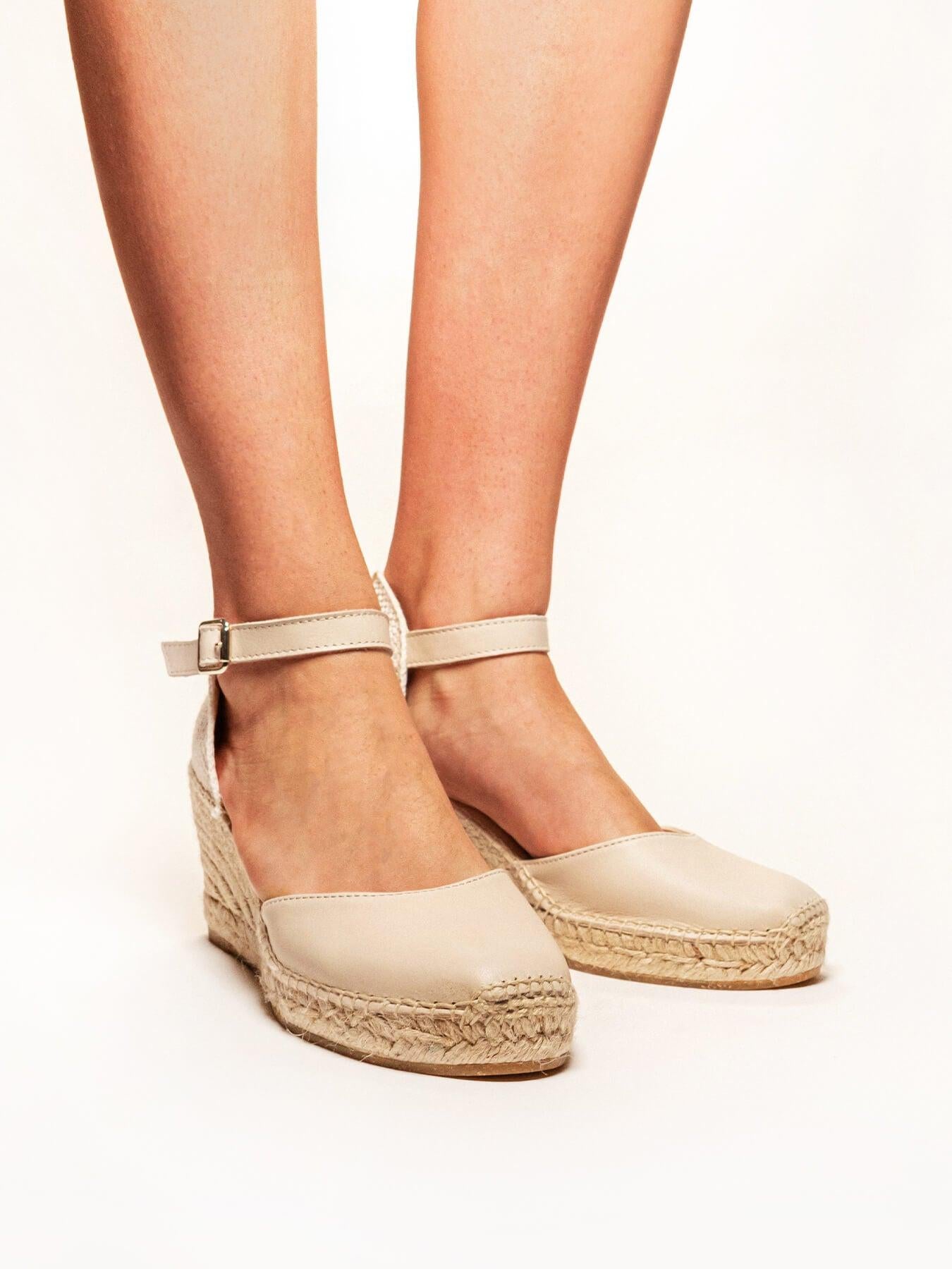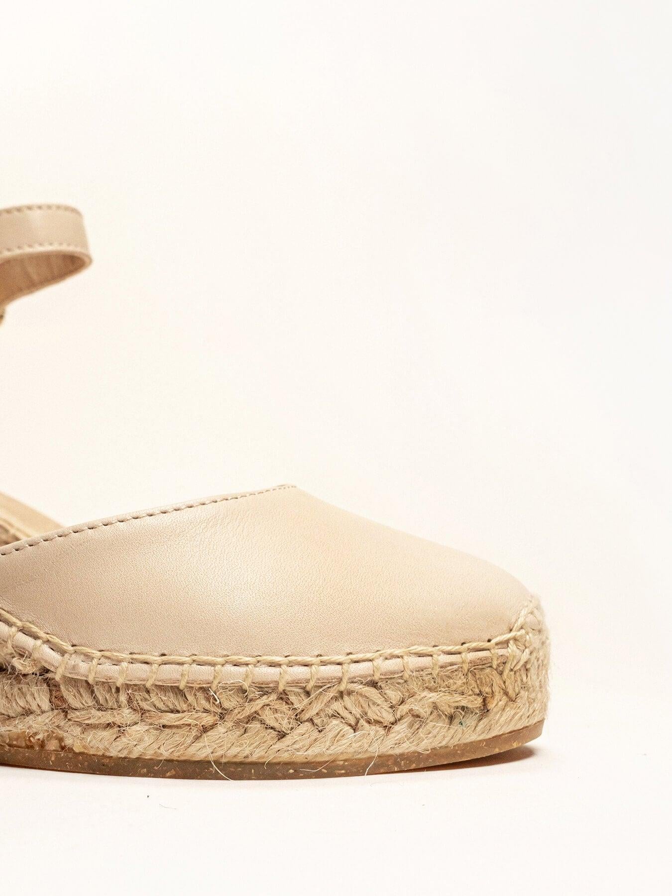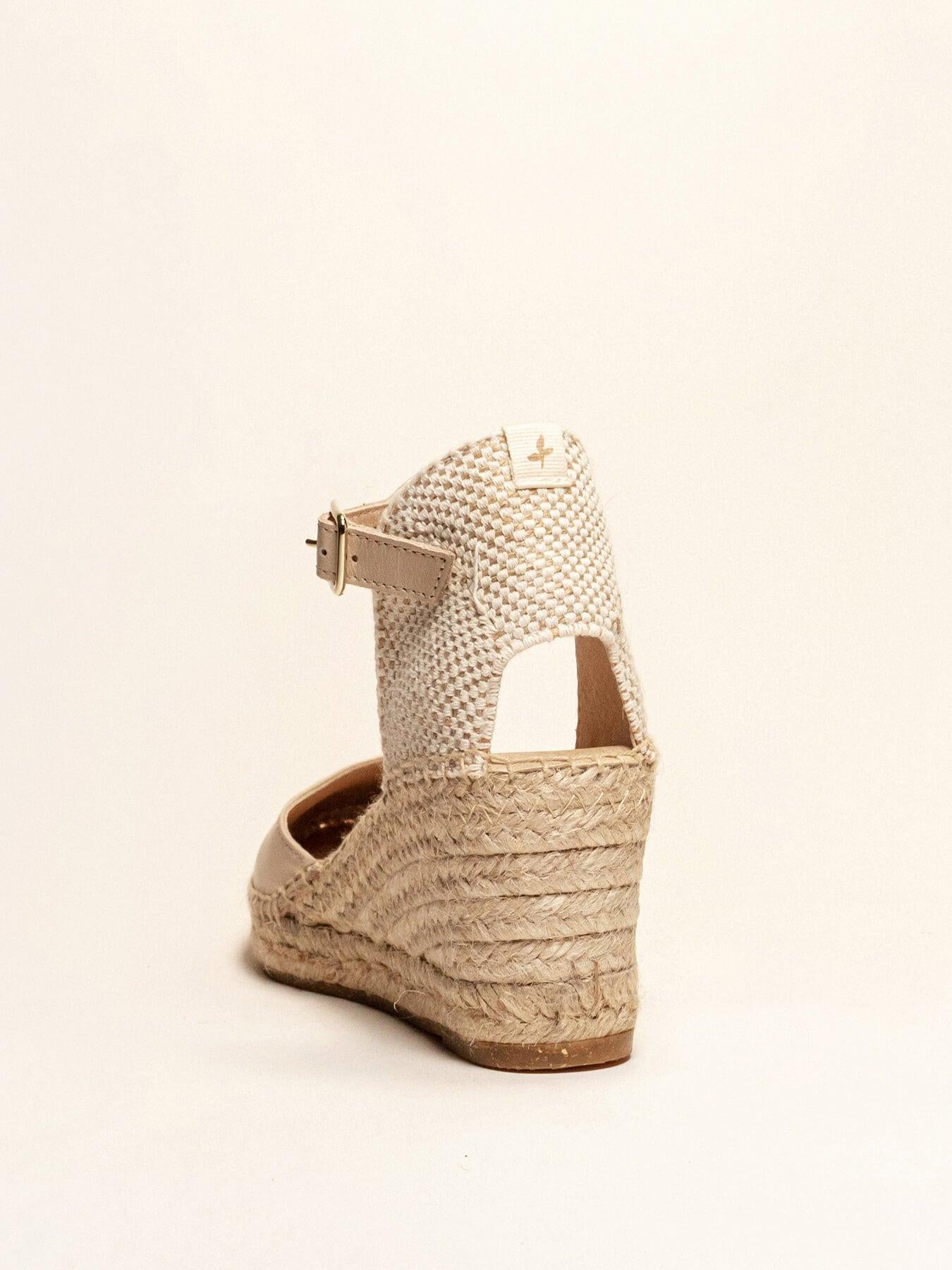 - Plataforma de trança de juta natural com sola de borracha reciclada misturada com fibras naturais.
