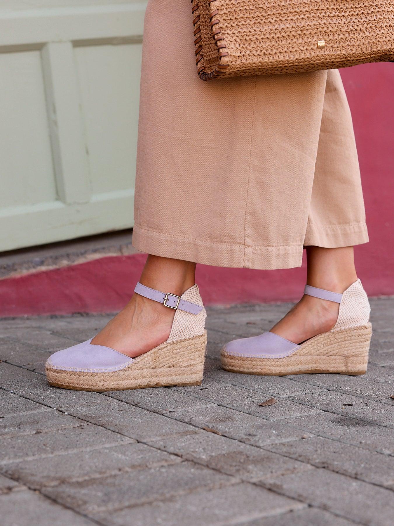 Sandália Anabela Média Plataforma Jara Camurça Lilás