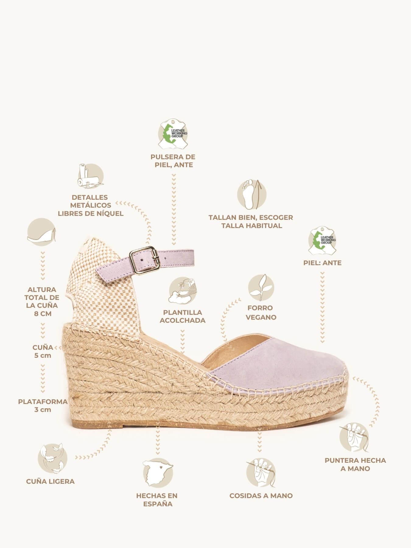 - Anabela trançada de juta natural com sola de borracha reciclada, misturada com fibras naturais
