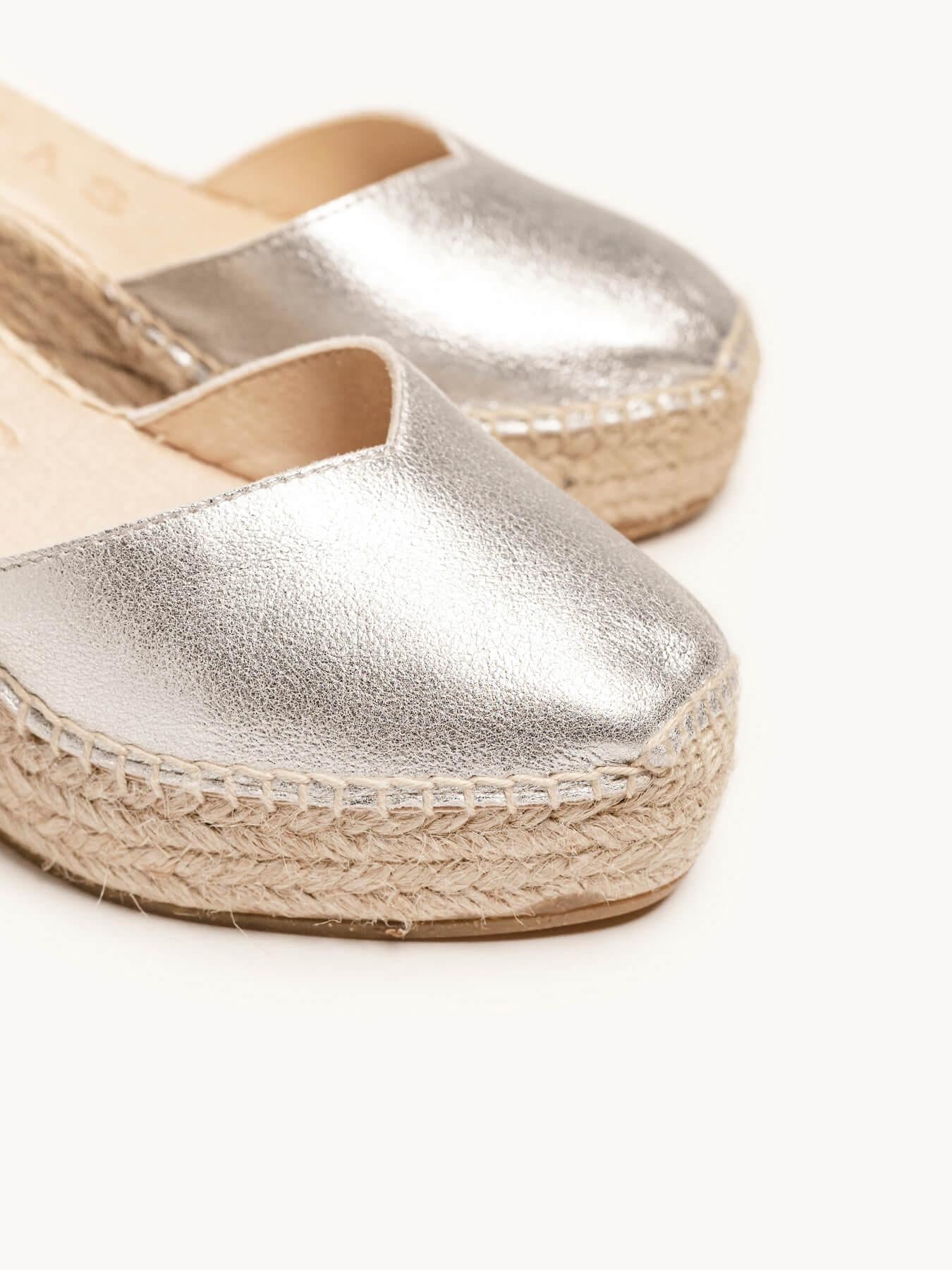 Sandália Anabela Média Plataforma Jara Camurça Prata Metalizado