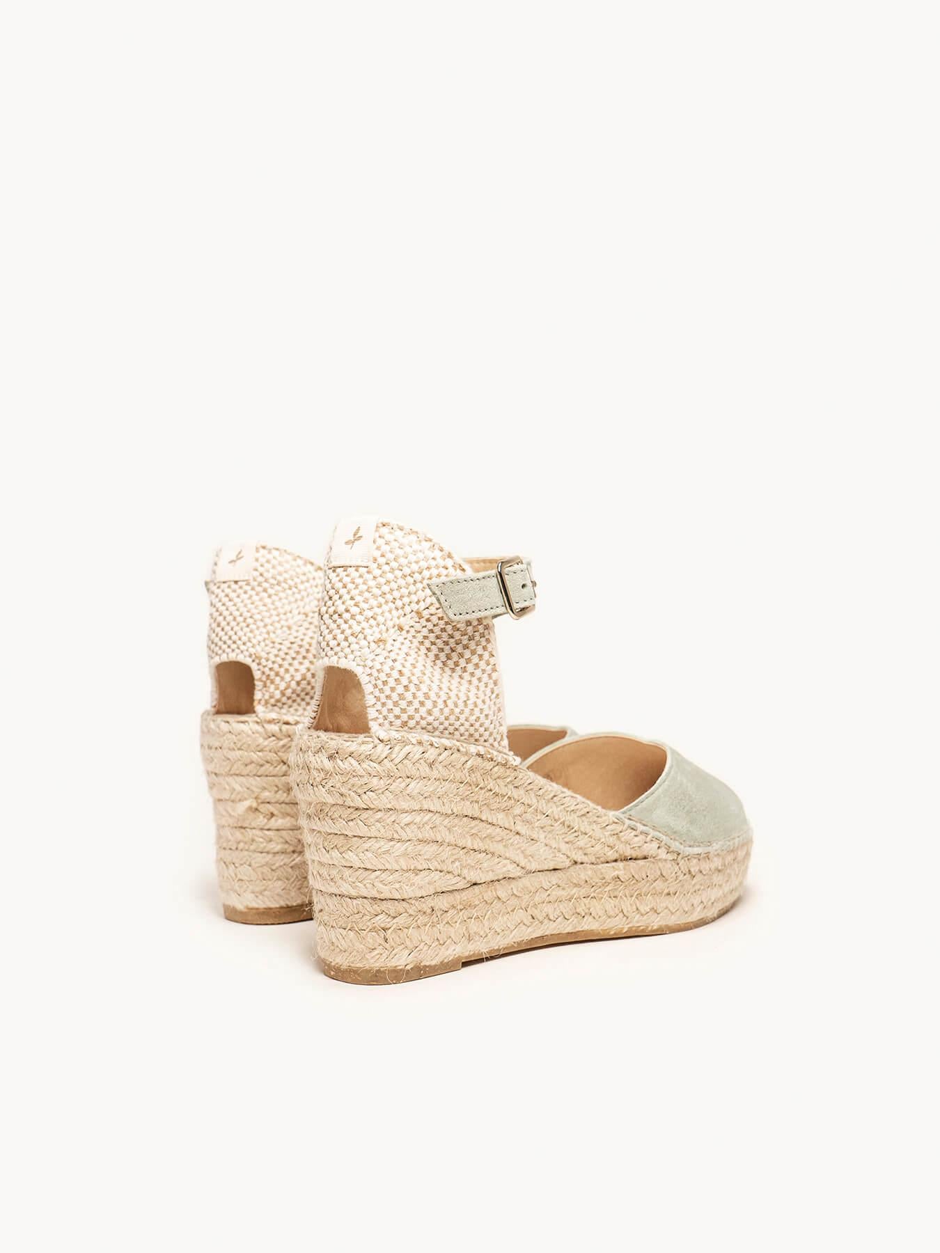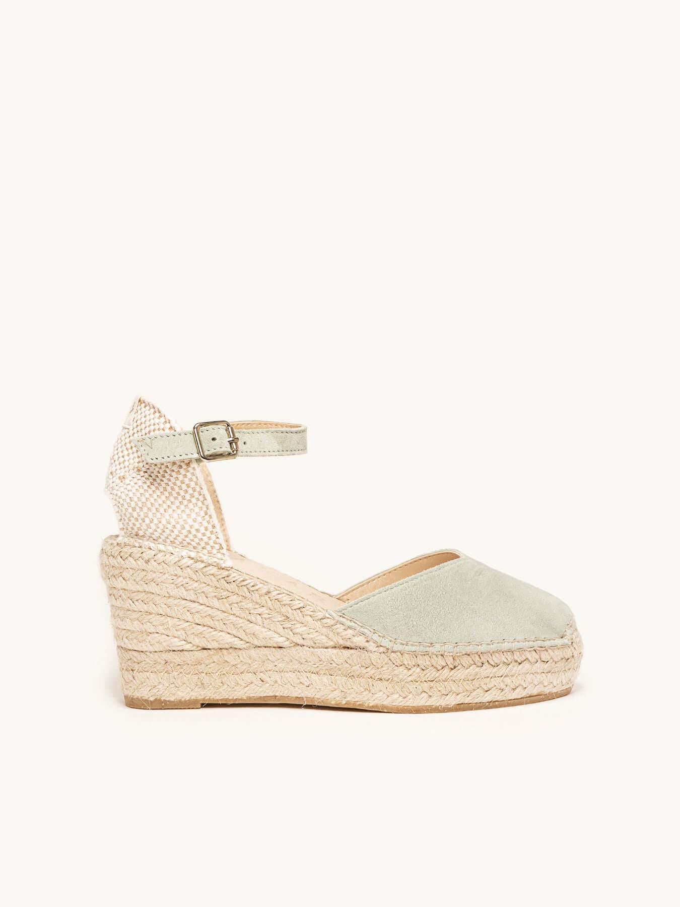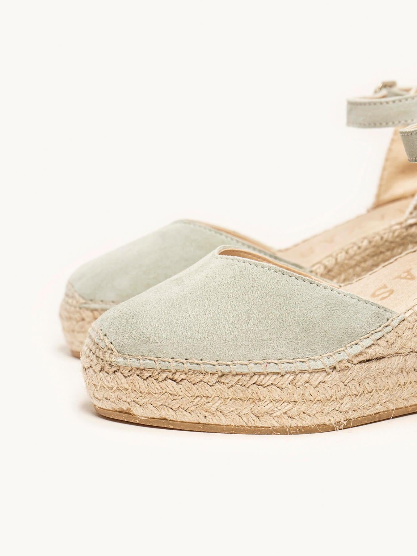 Sandália Anabela Média Plataforma Jara Camurça Verde Claro