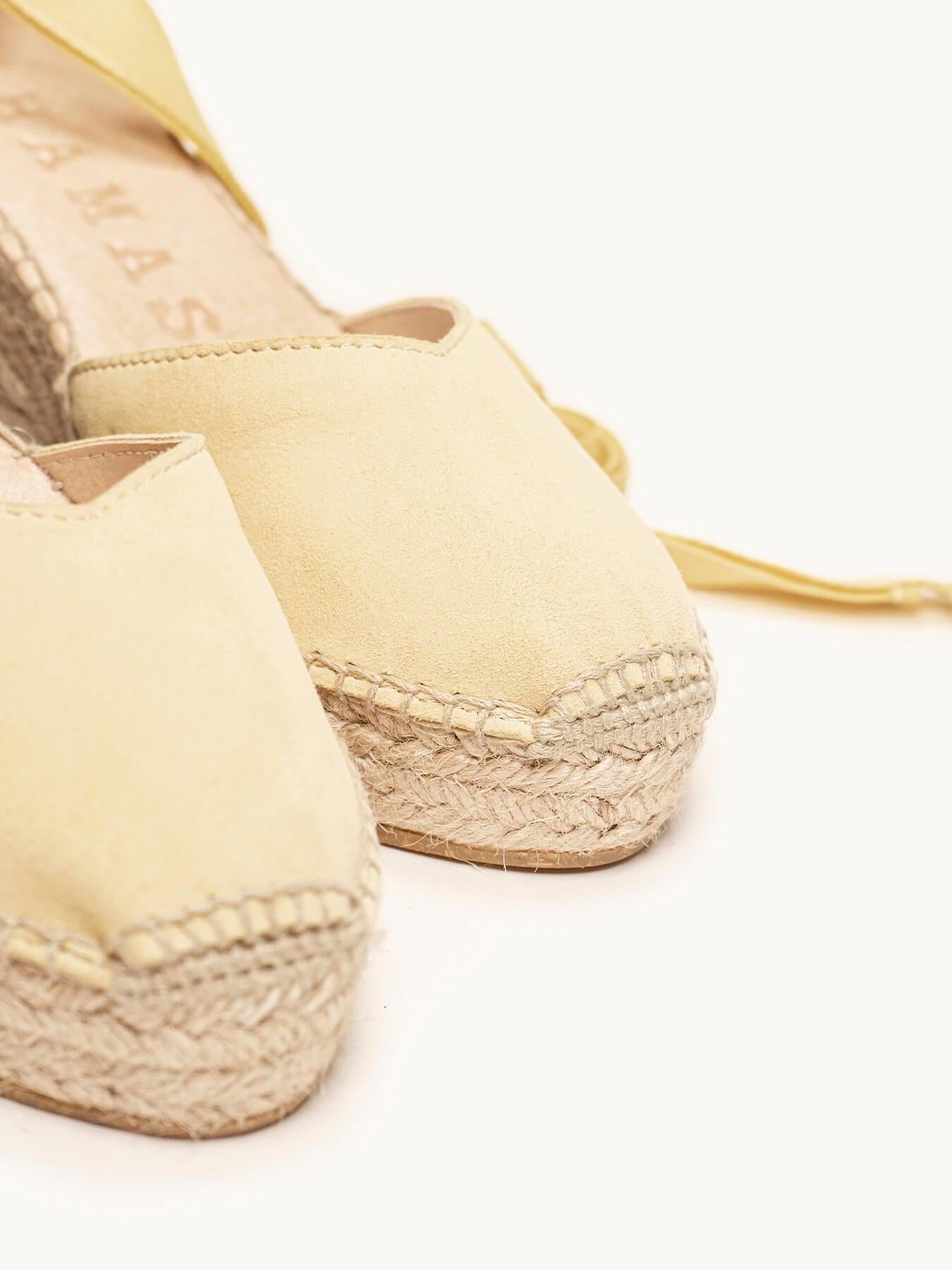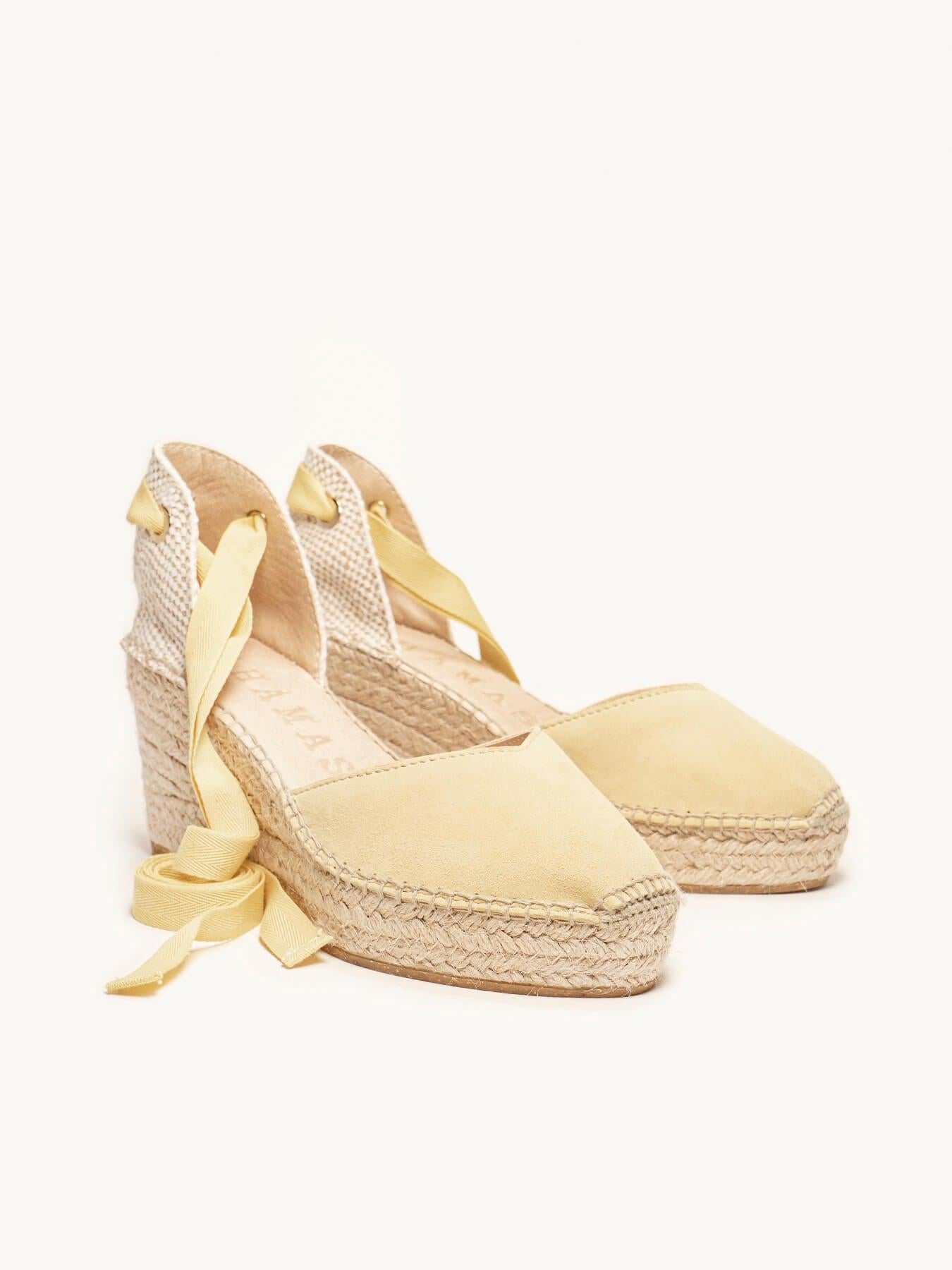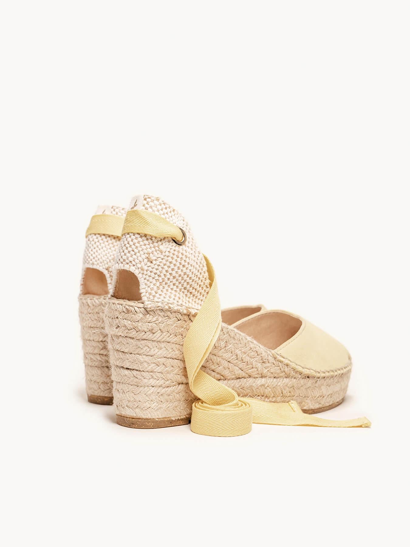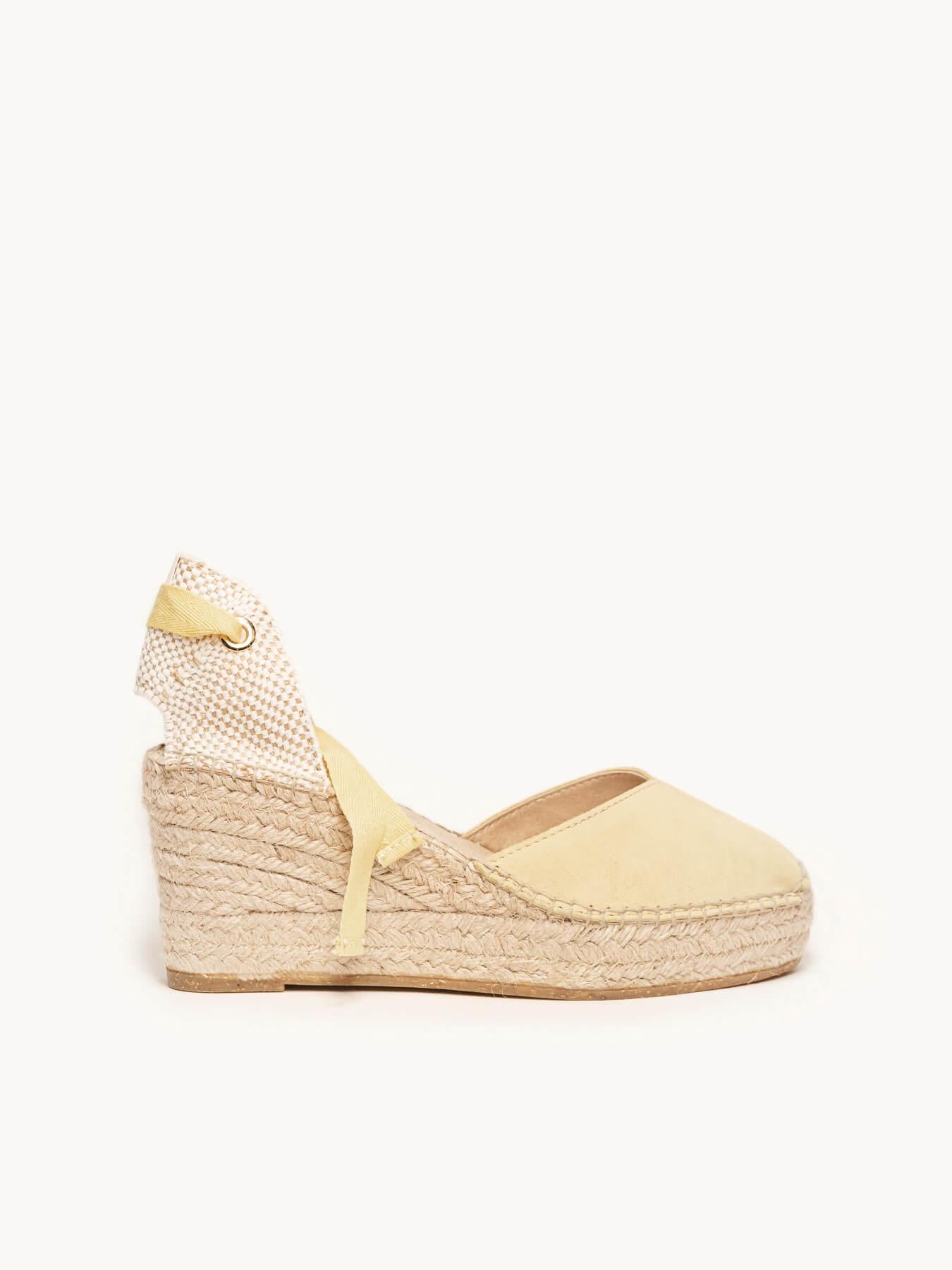 Sandália Anabela Média Plataforma Romero Camurça Amarela