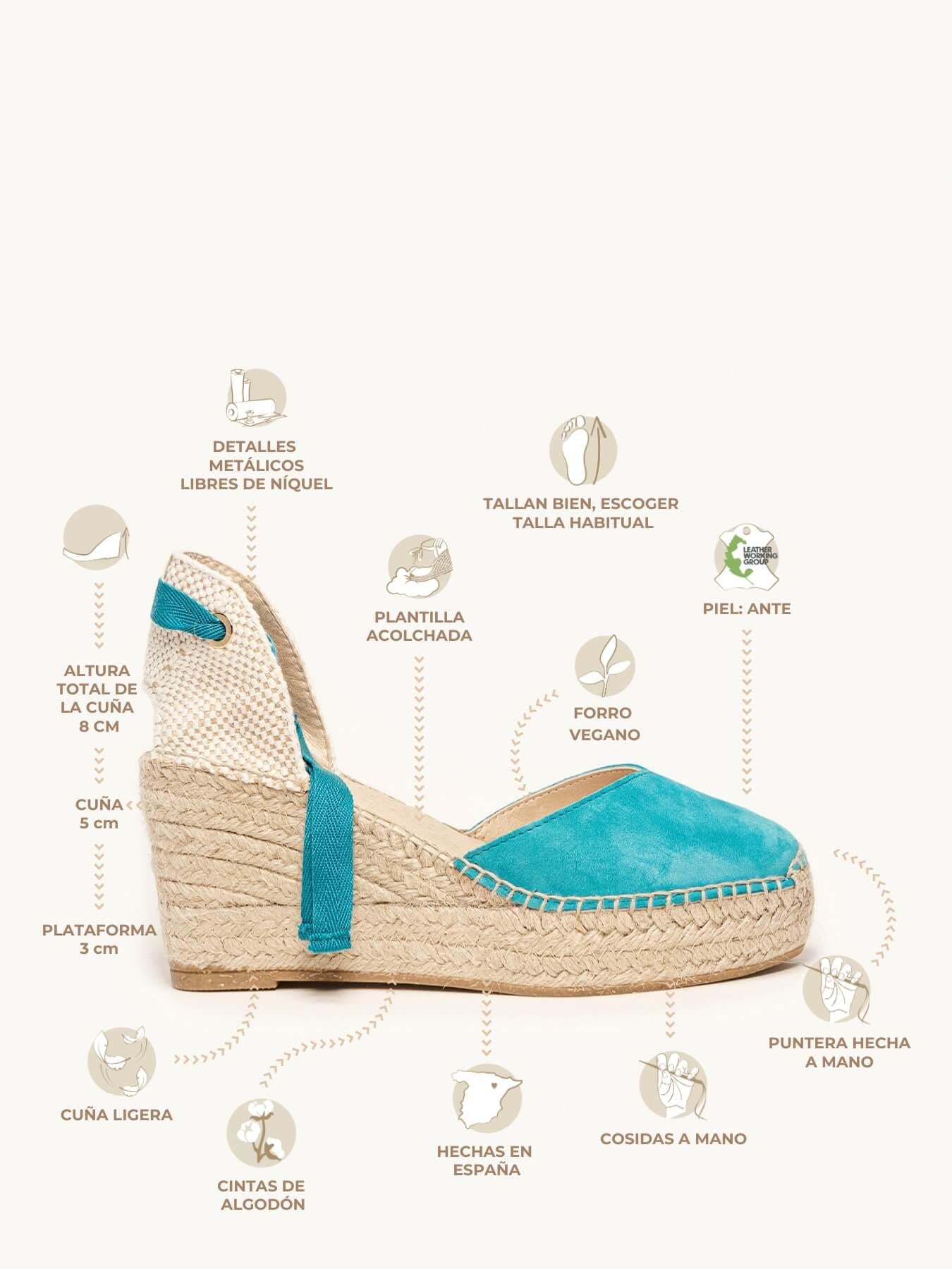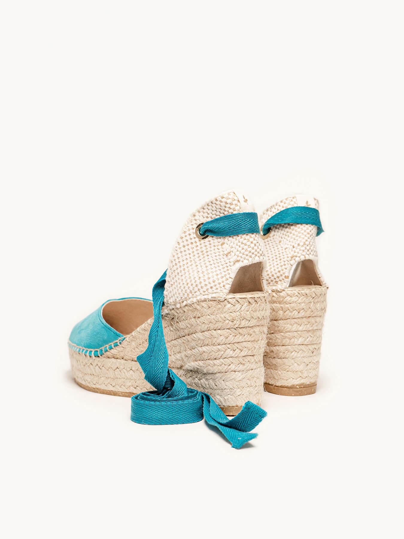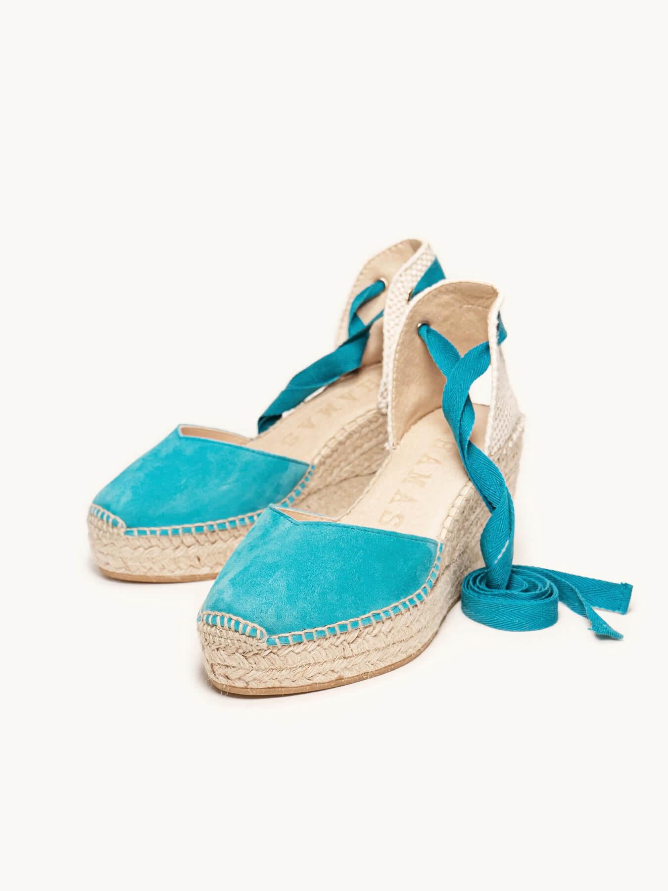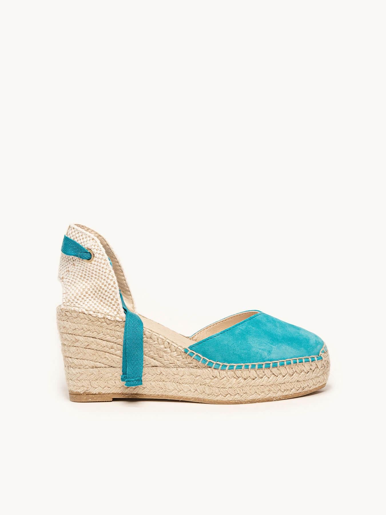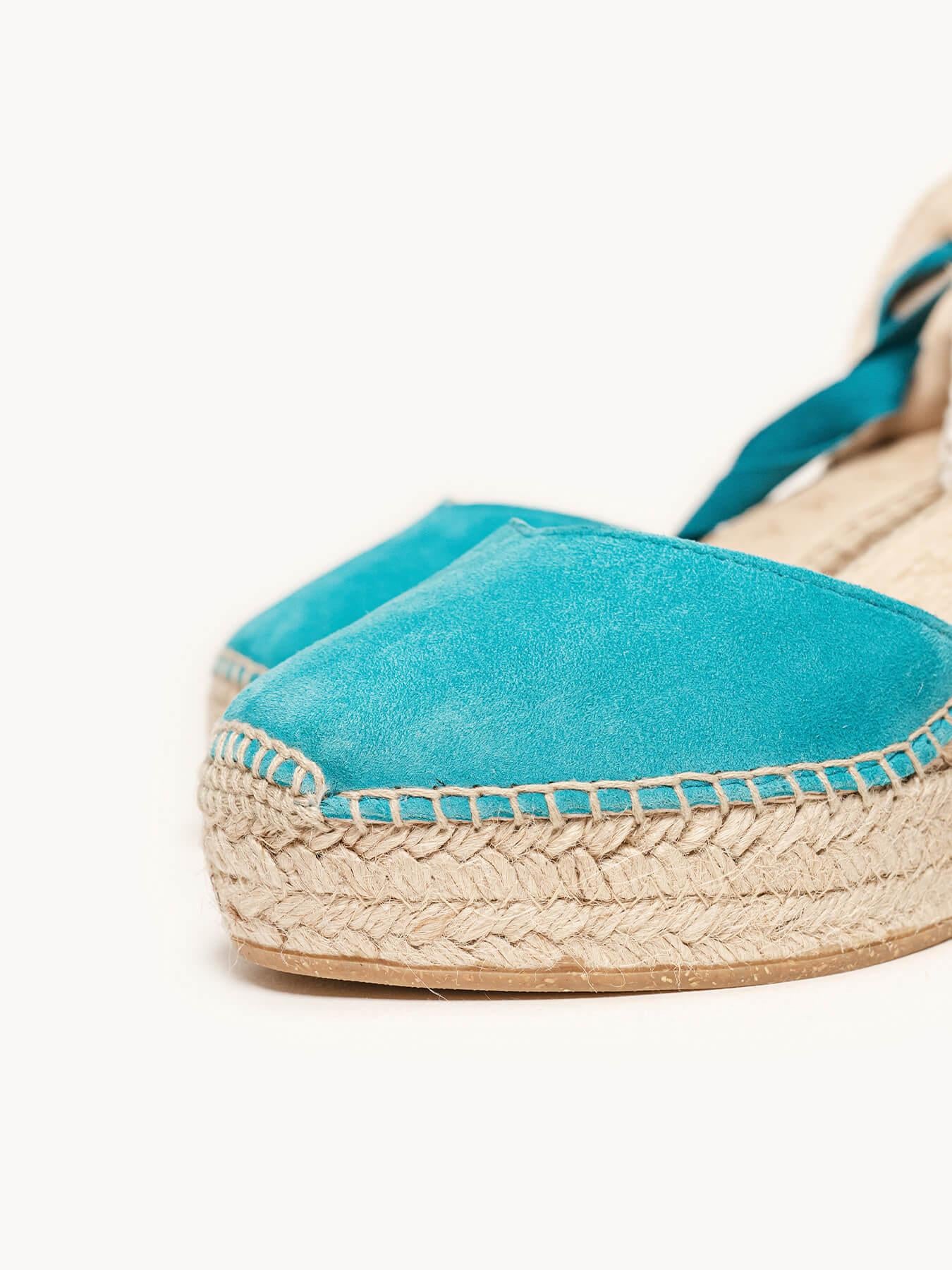 Sandália Anabela Média Plataforma Romero Camurça Azul Turquesa