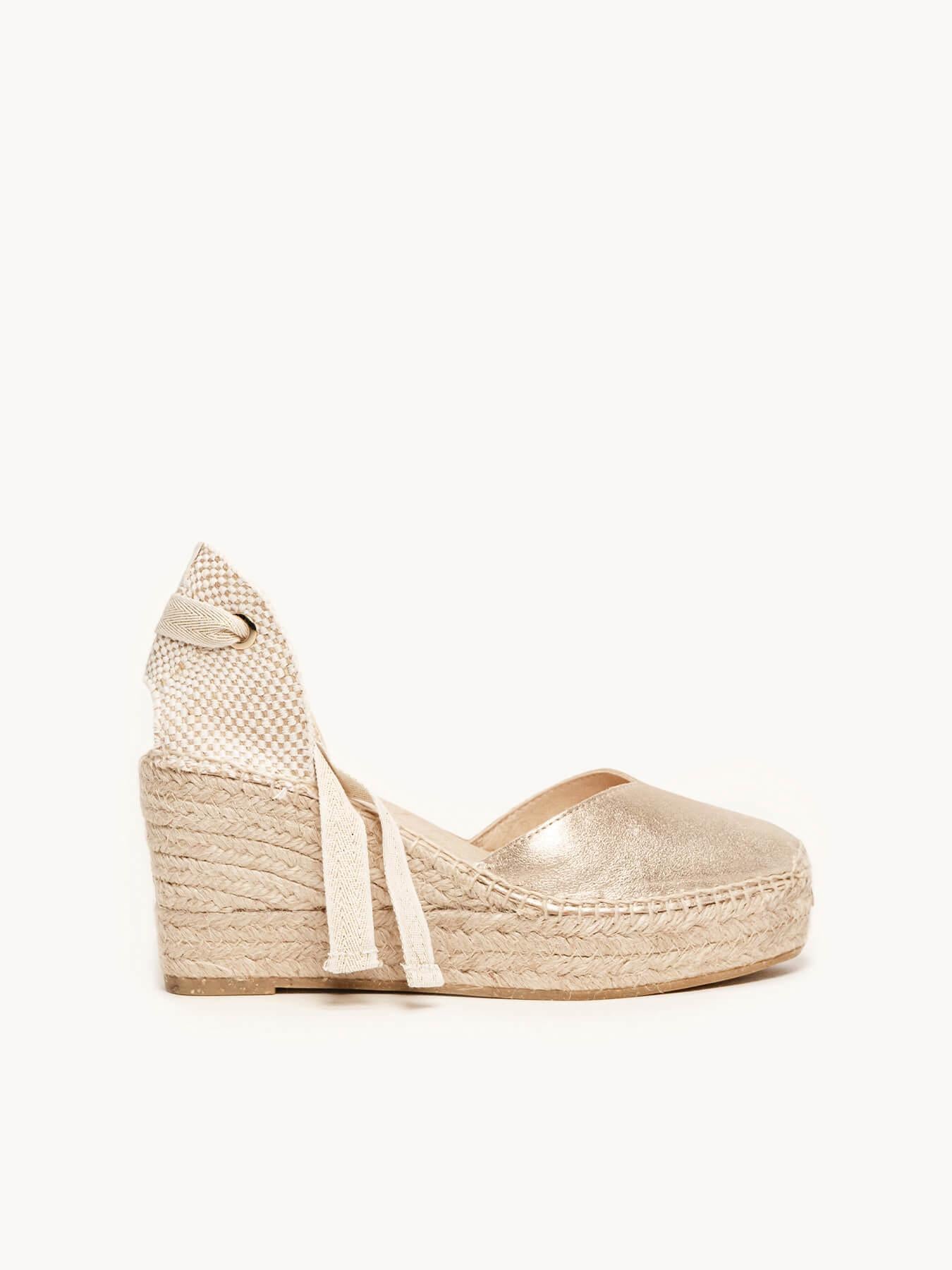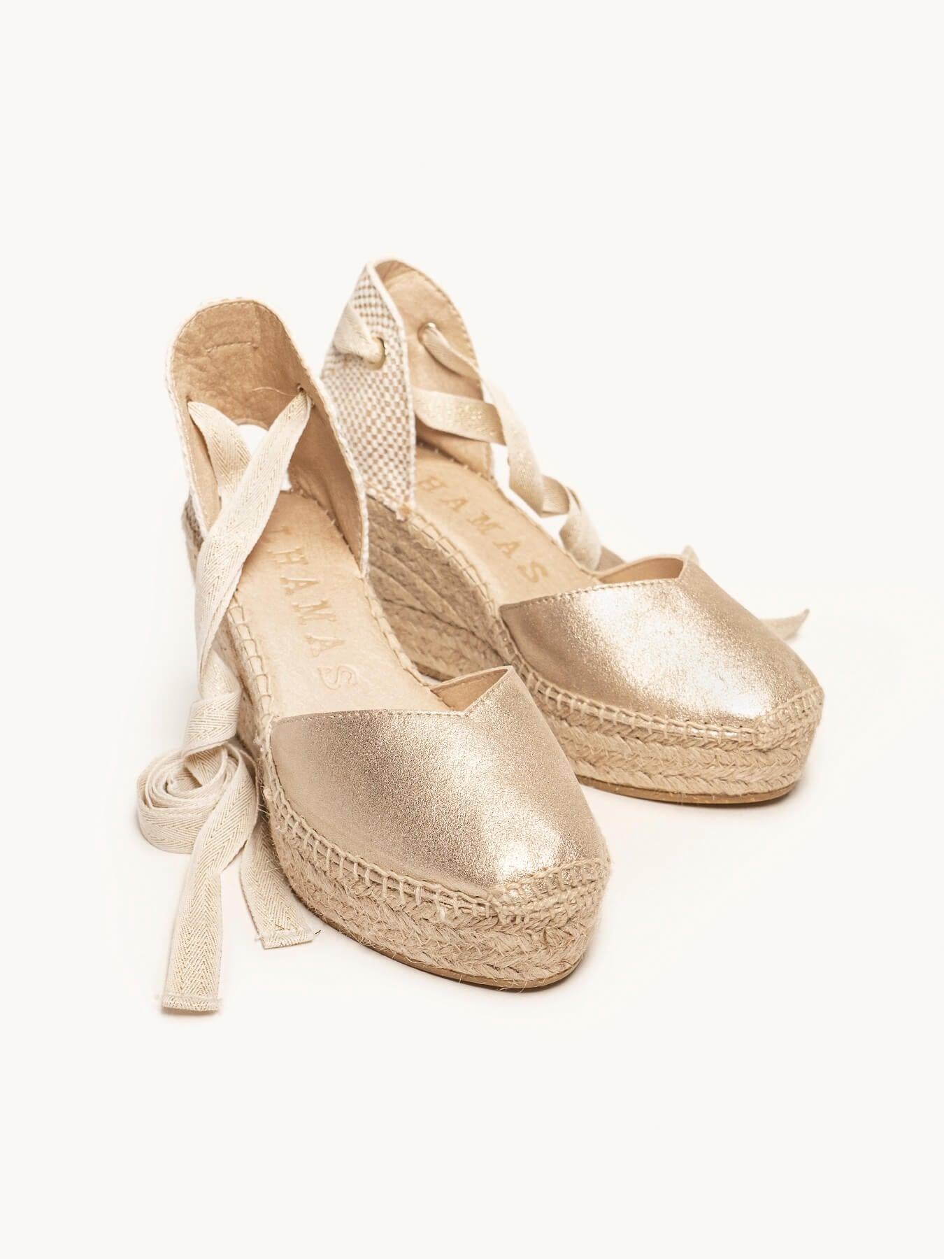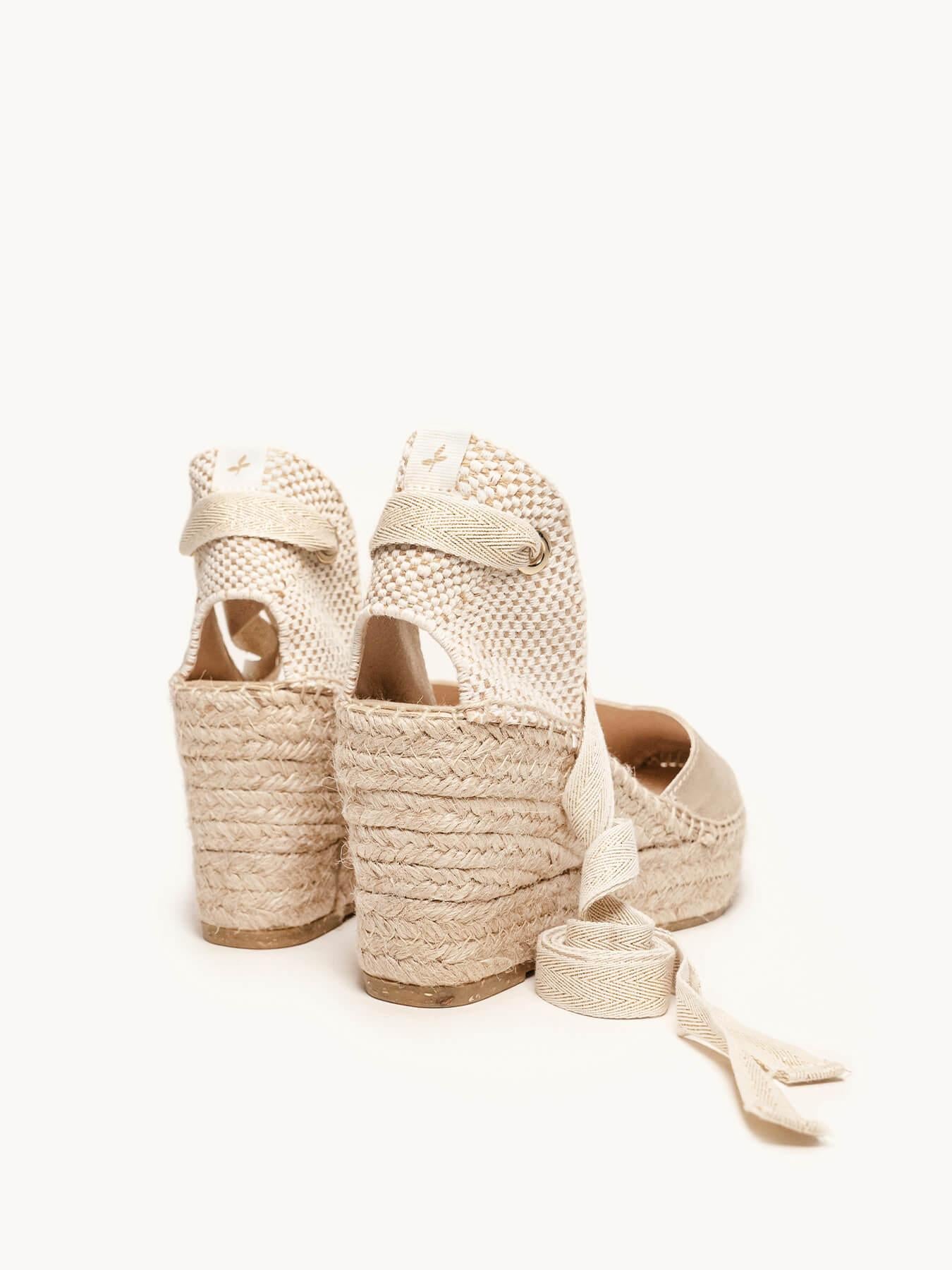 A sandália anabela média com anabela Romero é o nosso modelo mais icônico. Uma sandália valenciana com decote em coração e fitas que você poderá usar com seus looks especiais e também no dia a dia. Você pode dar um toque especial porque as fitas podem ser trocadas.