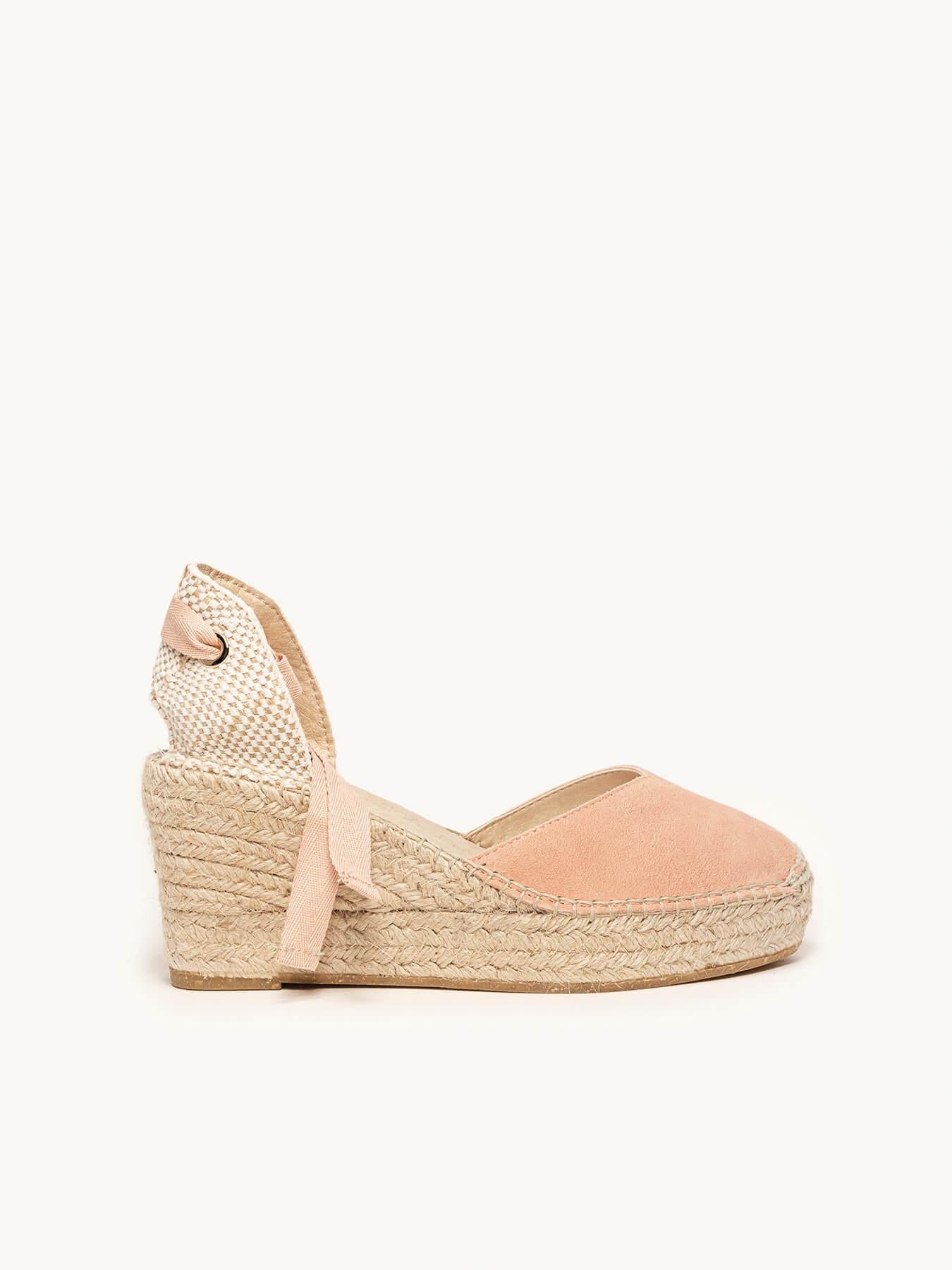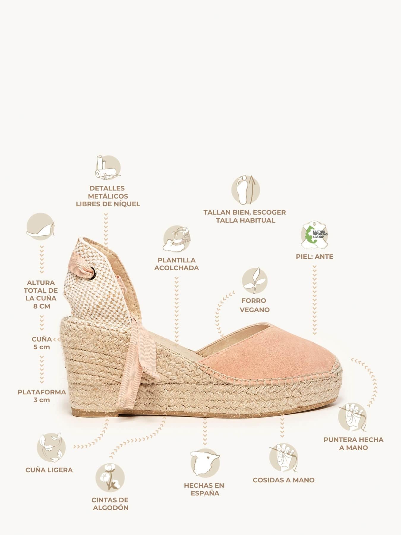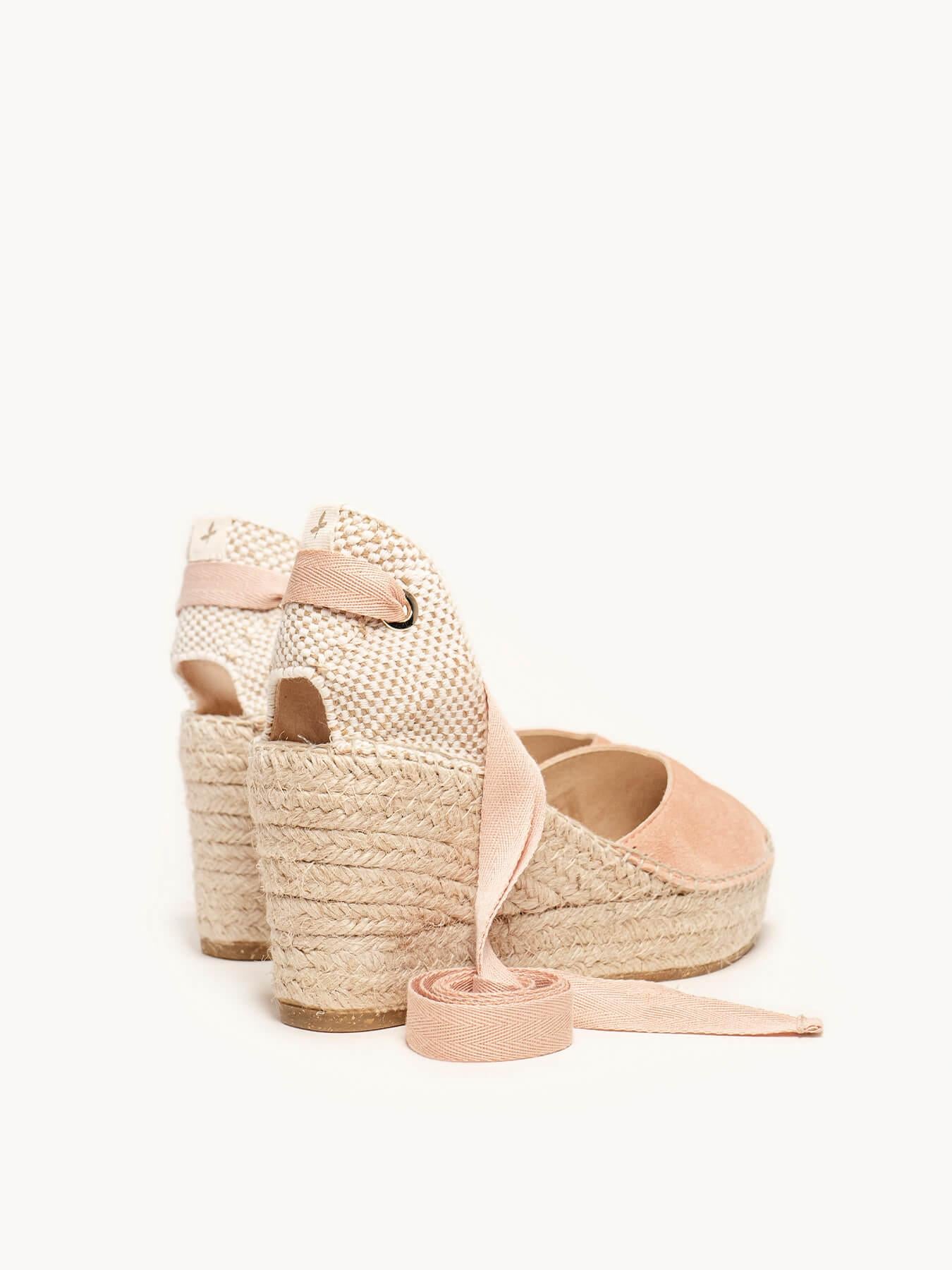 A sandália de anabela média com plataforma Romero é o nosso modelo mais icônico. Uma sandália valenciana com decote em coração e fitas que você pode usar nos seus looks especiais e também no dia a dia. Você pode dar um toque especial porque as fitas podem ser trocadas.