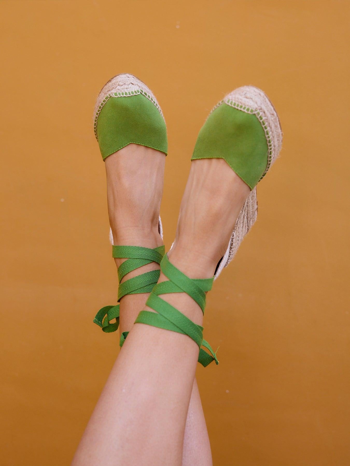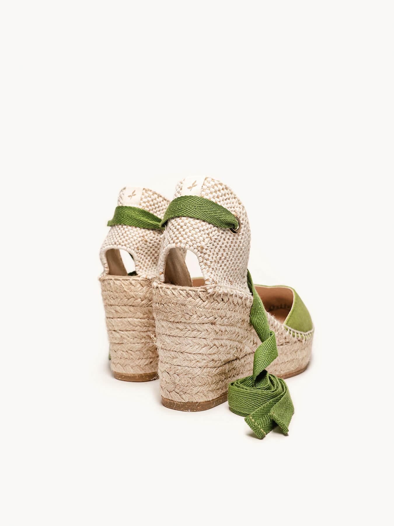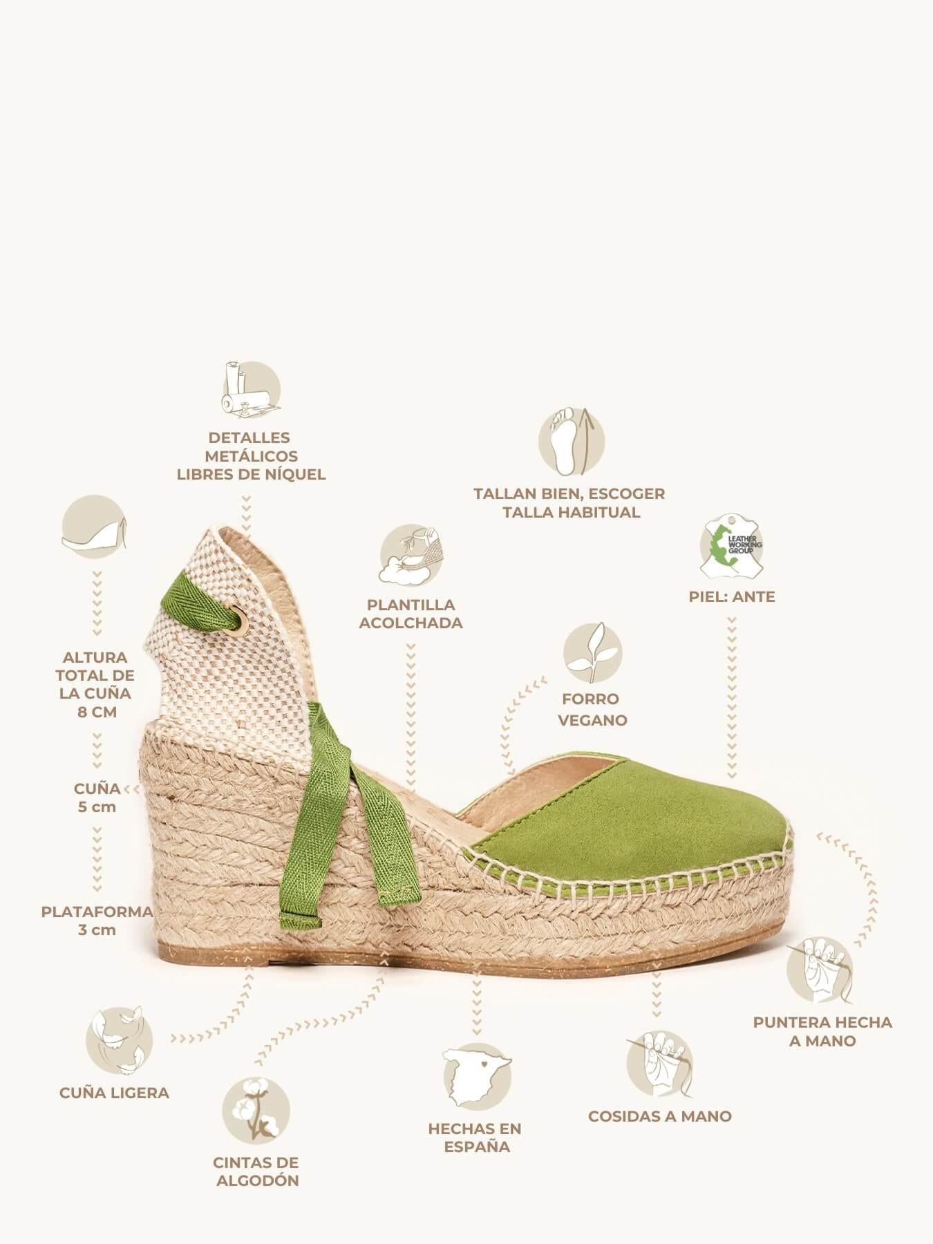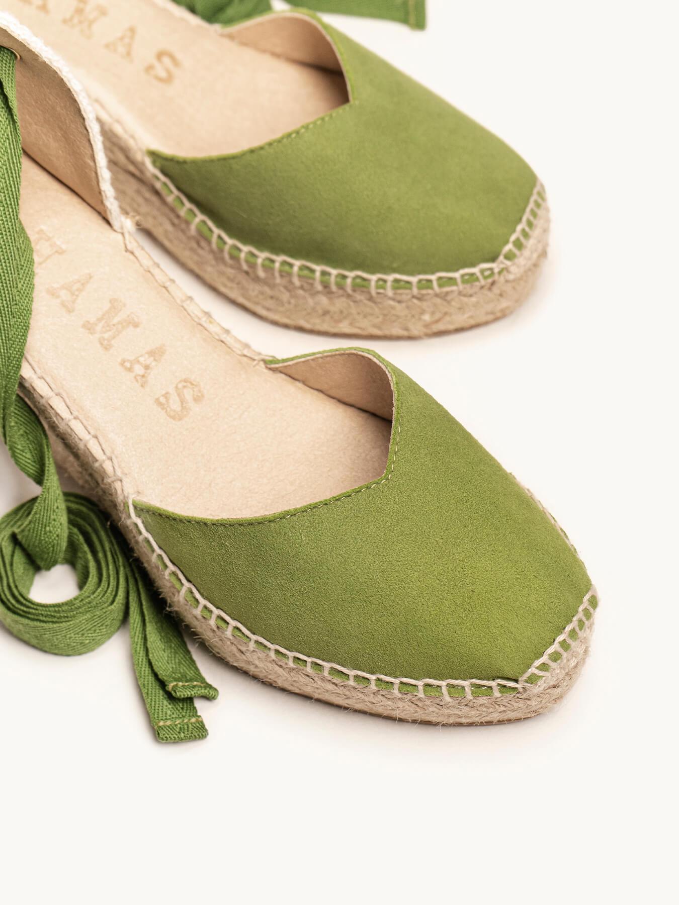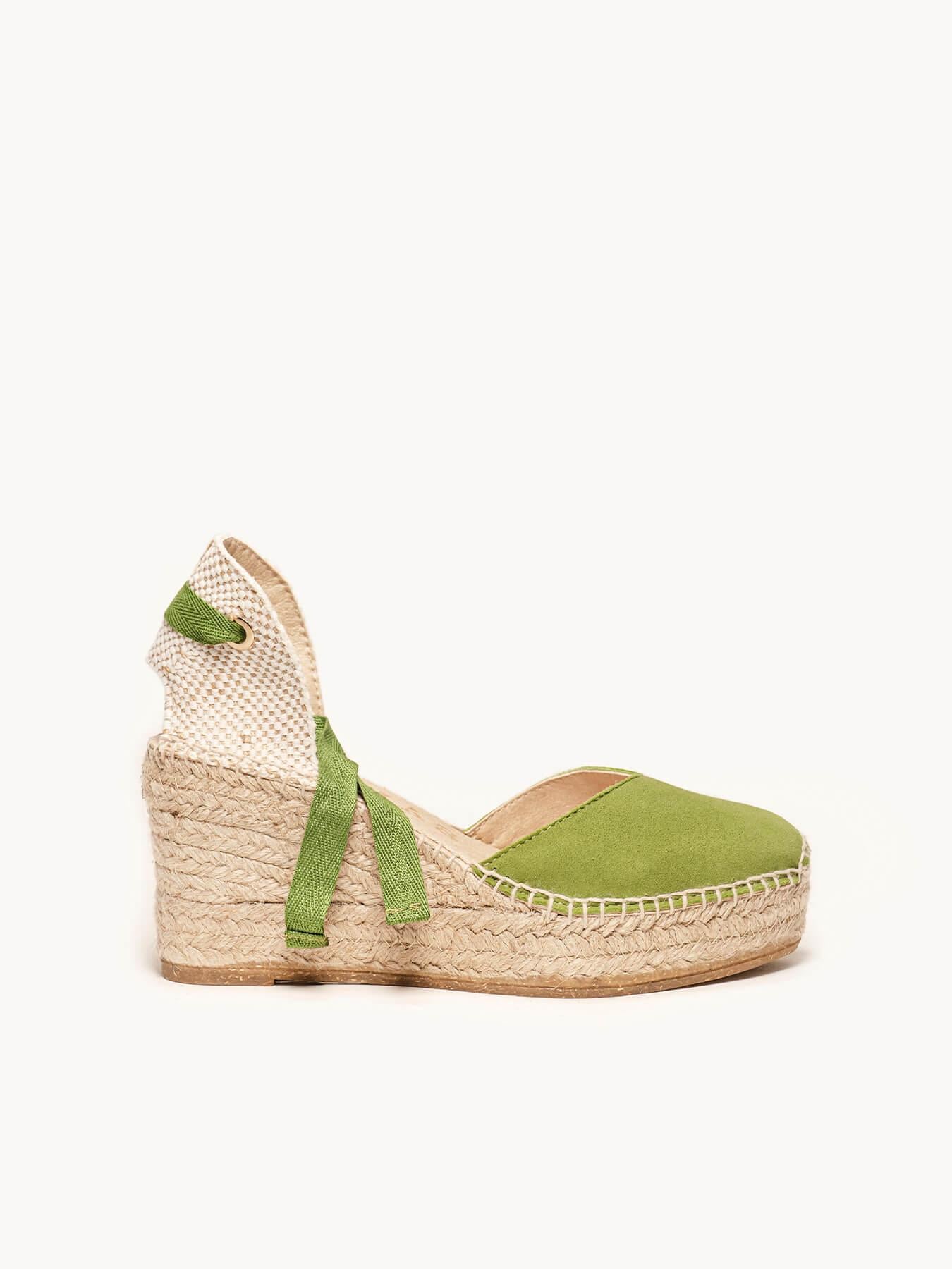 Sandália Anabela Média Plataforma Romero Camurça Verde