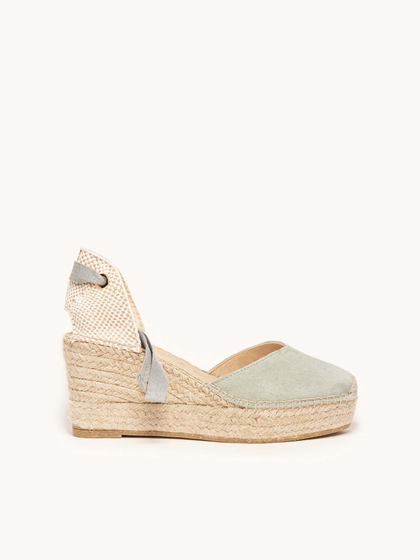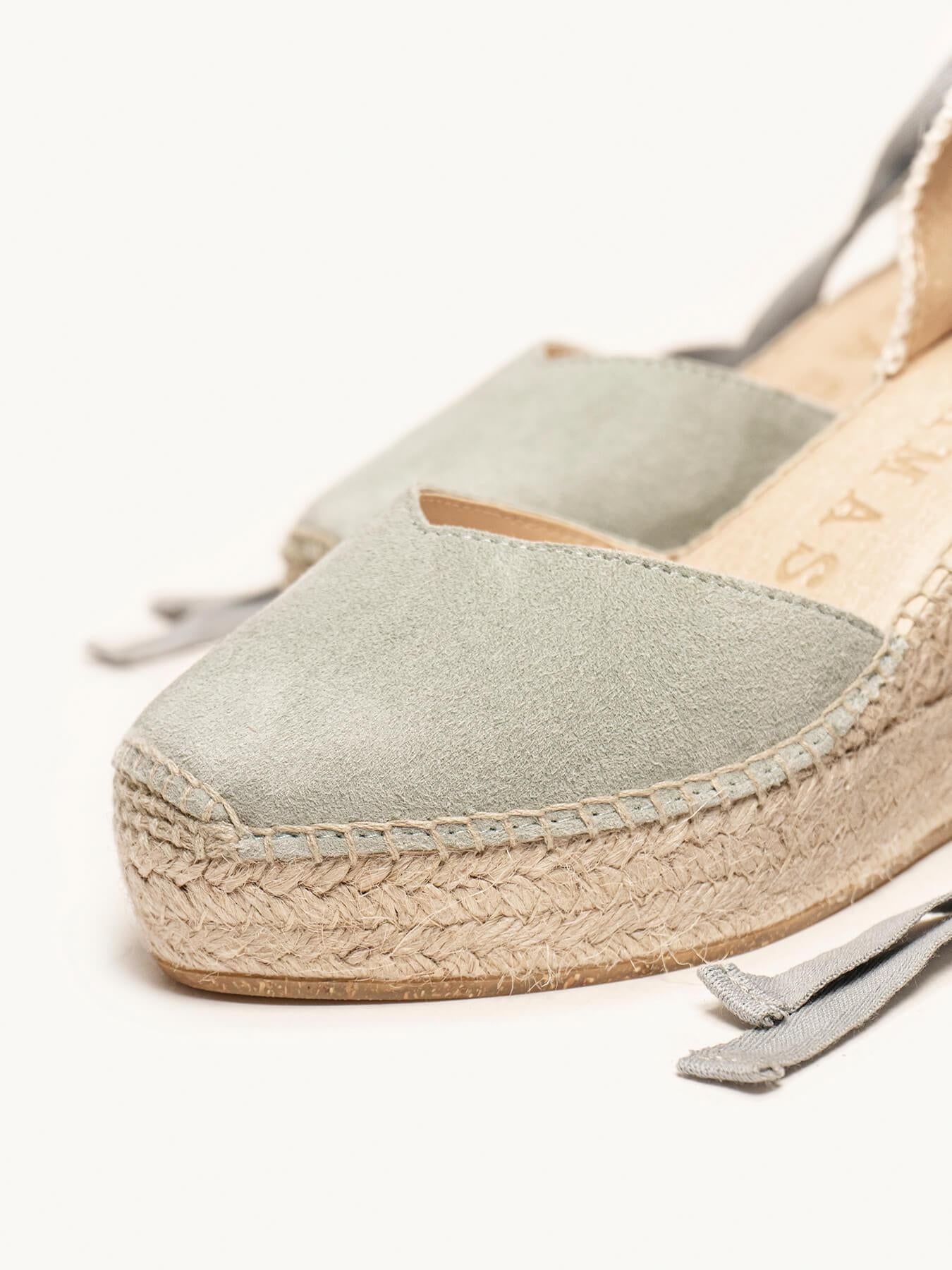 Sandália Anabela Média Plataforma Romero Camurça Verde Clara
