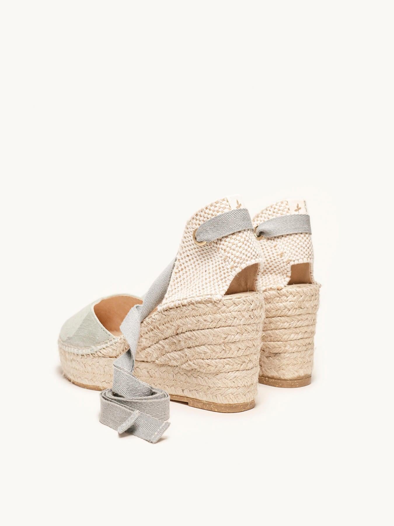 - Anabela de trança de juta natural com sola de borracha reciclada misturada com fibras naturais