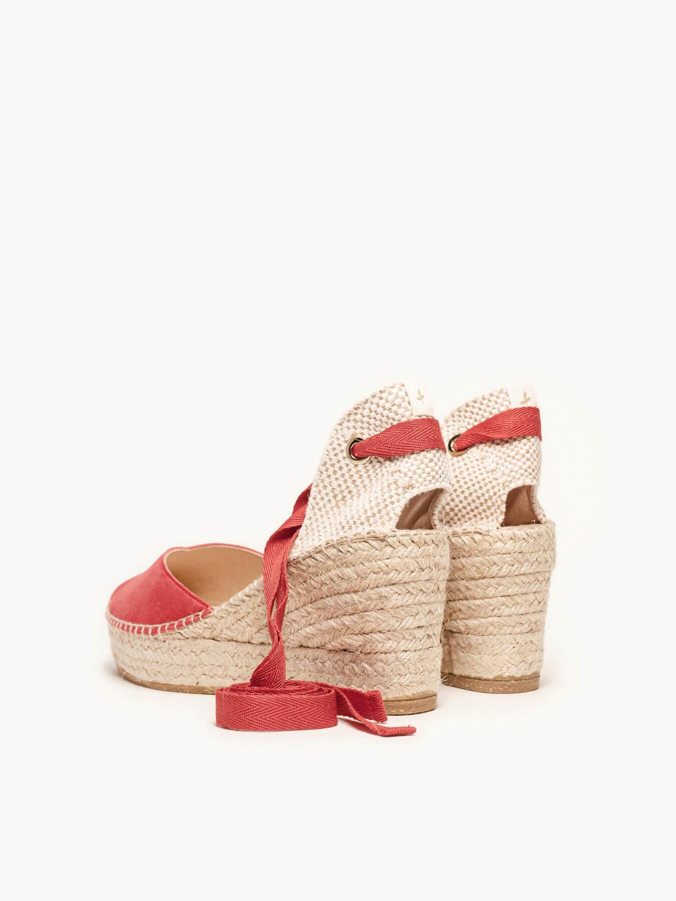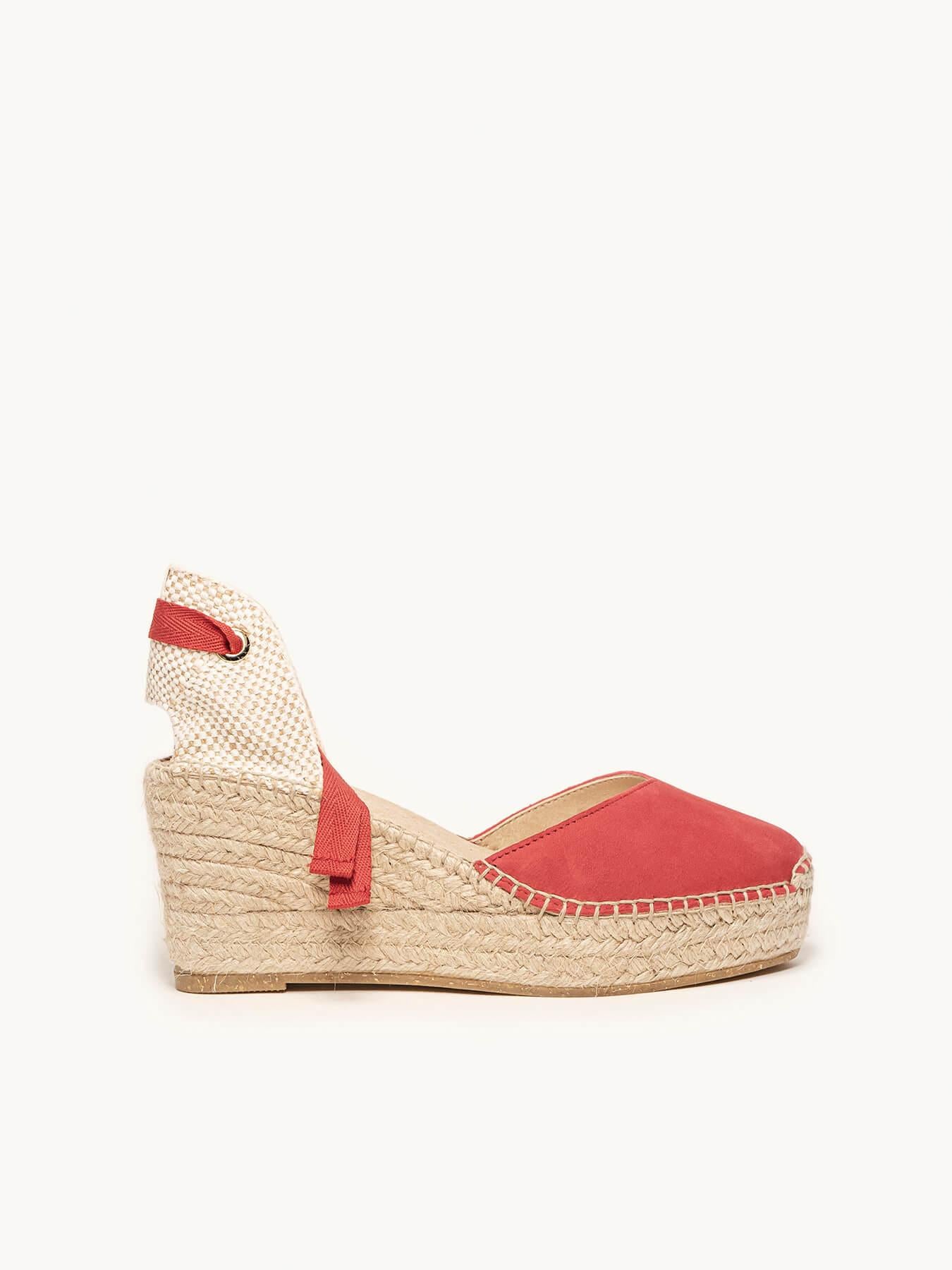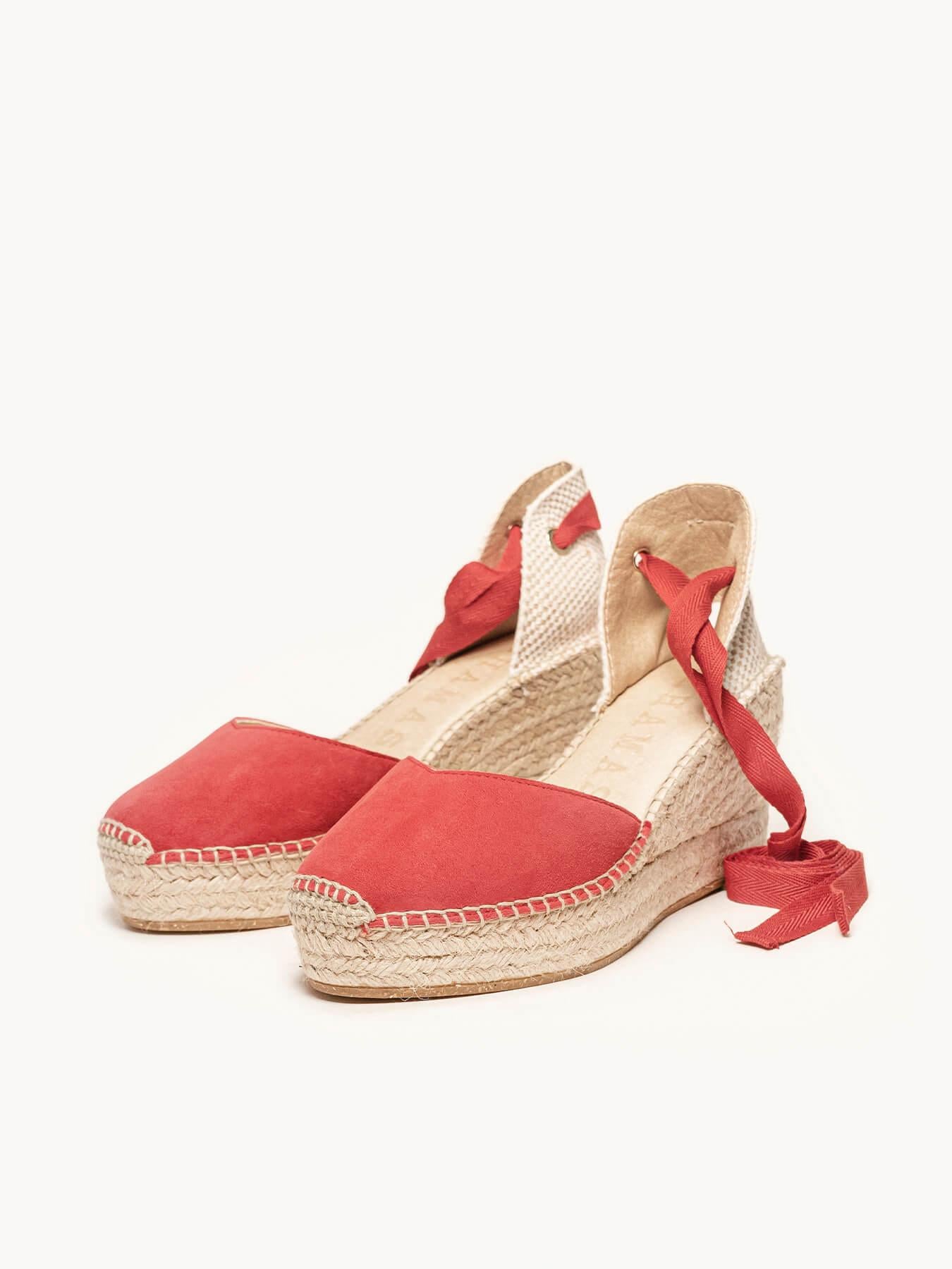 Sandália Anabela Média Plataforma Romero Camurça Vermelho