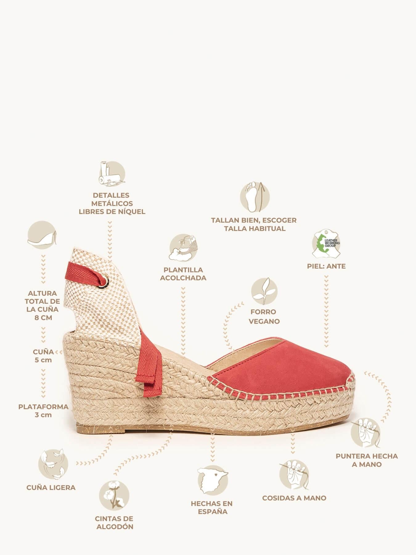 A alpargata anabela média com plataforma Romero é o nosso modelo mais icônico. Uma alpargata valenciana com decote coração e fitas que você poderá usar com seus looks especiais e também no dia a dia. Você poderá dar um toque especial porque as fitas podem ser trocadas.