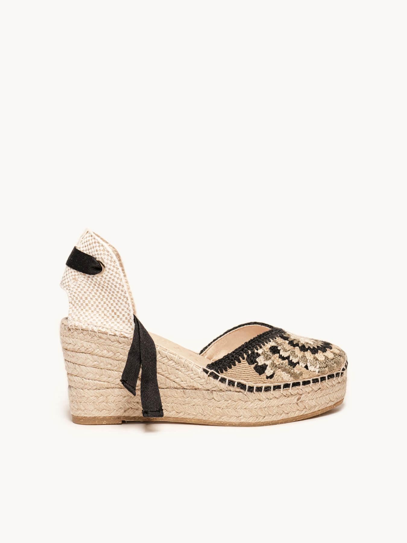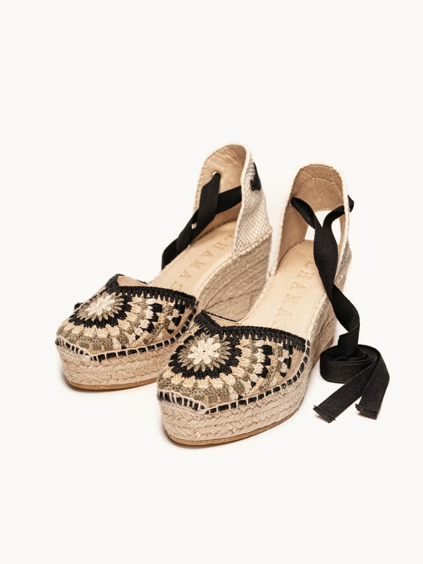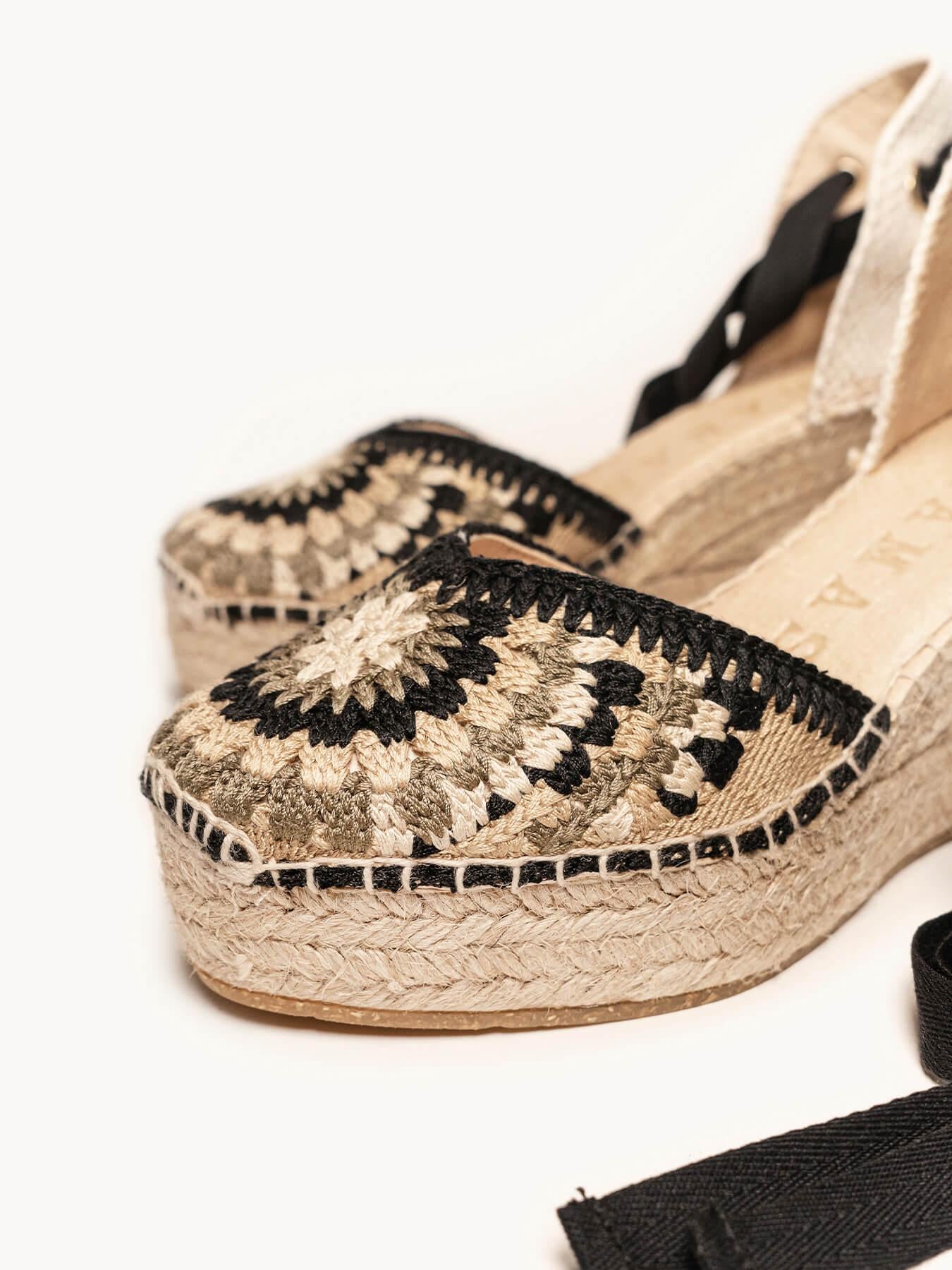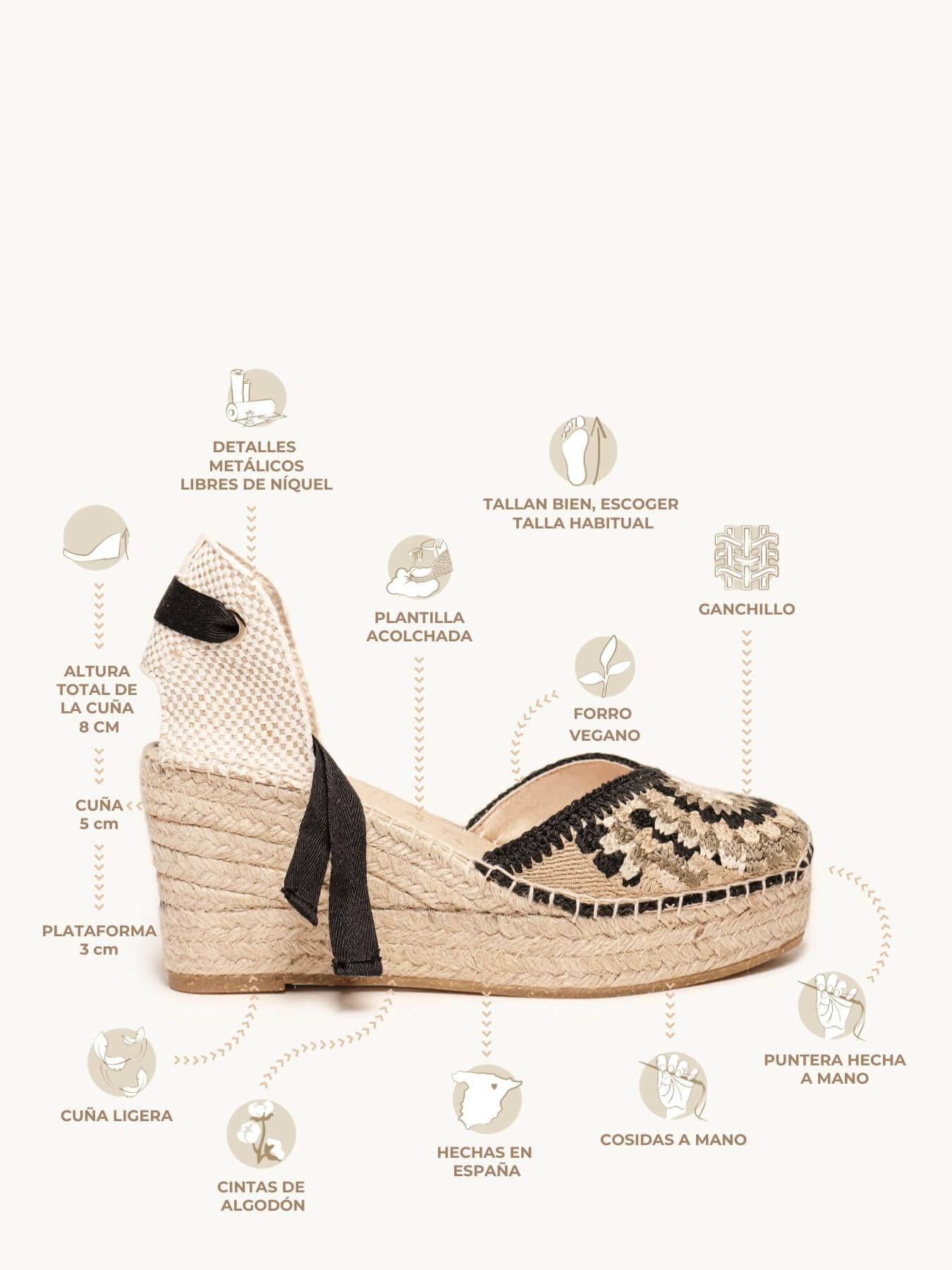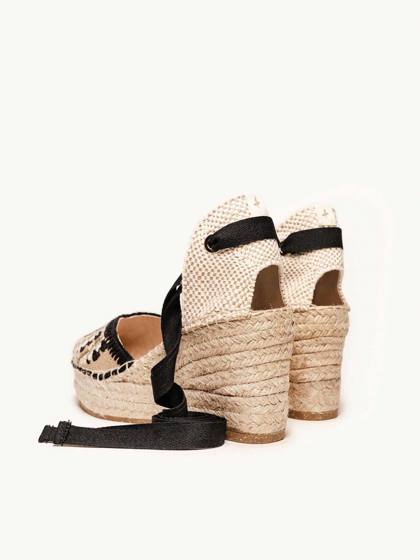 - Plataforma de trança de juta natural com sola de borracha reciclada misturada com fibras naturais