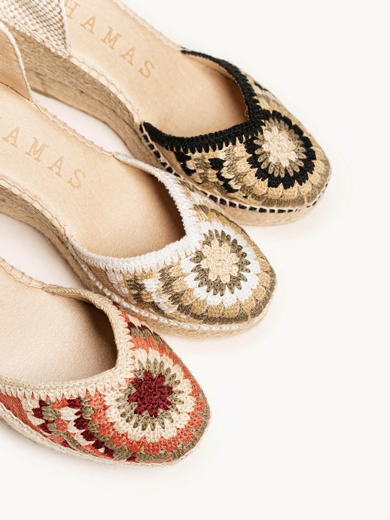 O modelo Romero é um dos nossos modelos mais tradicionais e românticos. Nossa alpargata com fitas é um modelo muito versátil, ideal para o dia a dia e também para dar um toque muito chique aos looks mais especiais. Alpargatas de crochê com fitas muito especiais, pois você poderá amarrá-las de diversas formas.