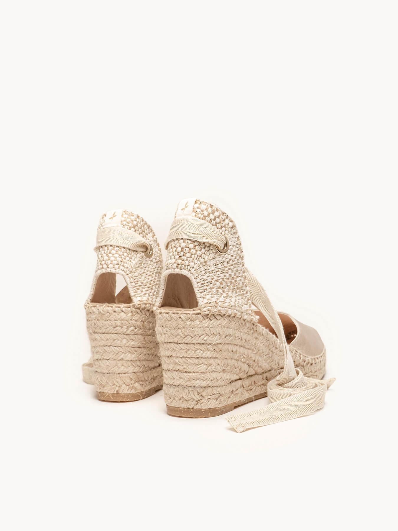 A sandália Romero anabela média é o nosso modelo mais icônico. Uma sandália valenciana com decote em coração e fitas que você pode usar com seus looks especiais e também no dia a dia. Você pode dar um toque especial porque as fitas podem ser trocadas.