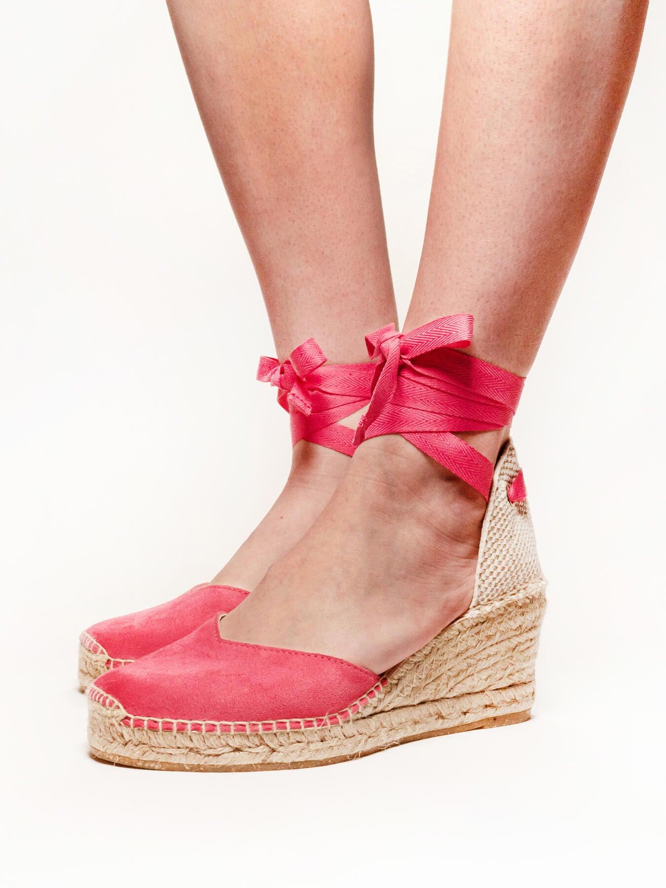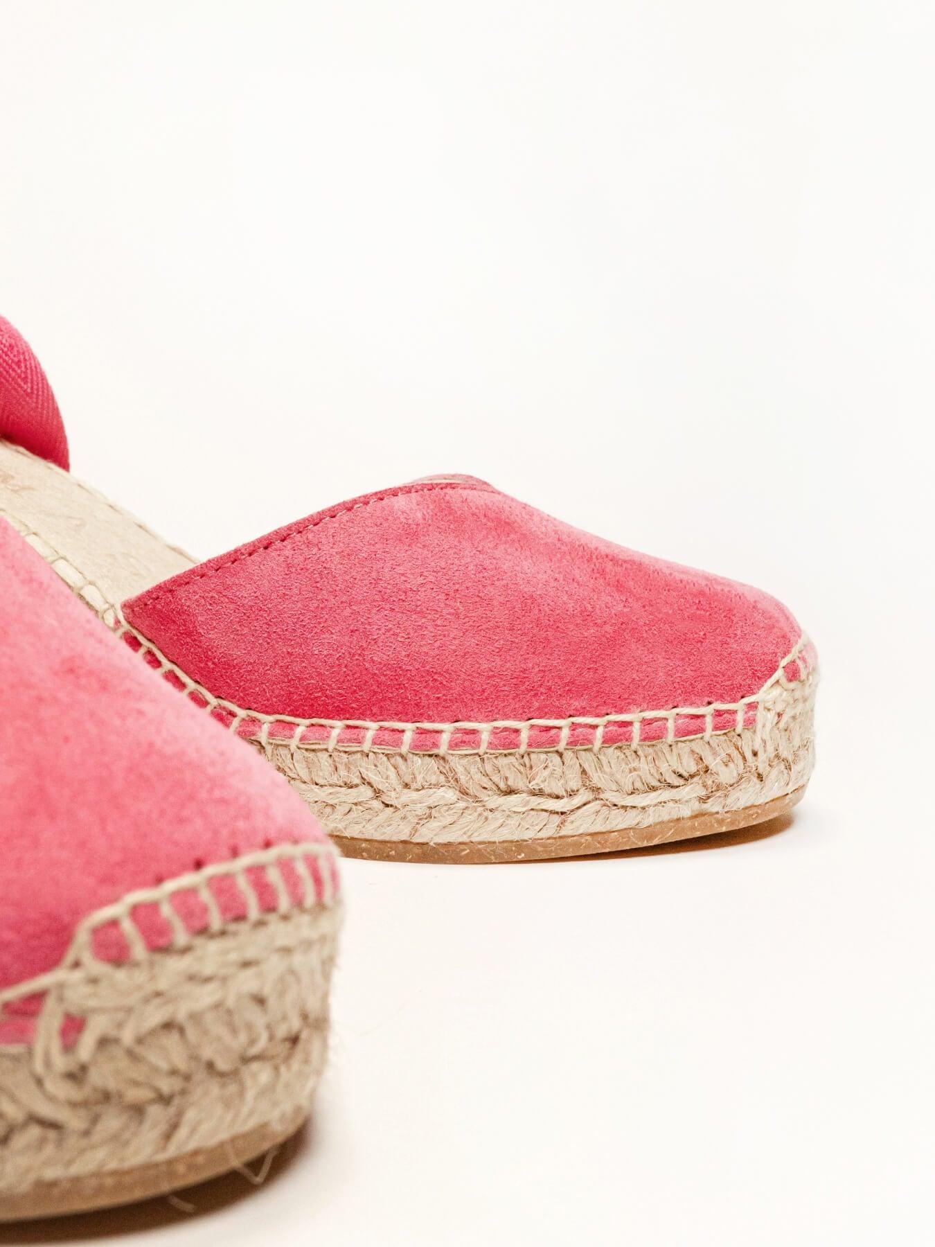 Sandália Anabela Média Romero Camurça Fúcsia