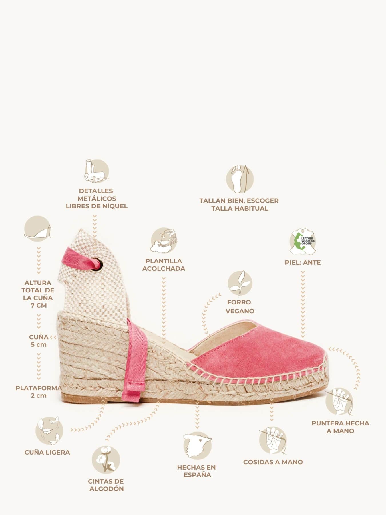• Média Alpargata Anabela Média: 7 cm no total (2 cm de plataforma + 5 cm de salto).