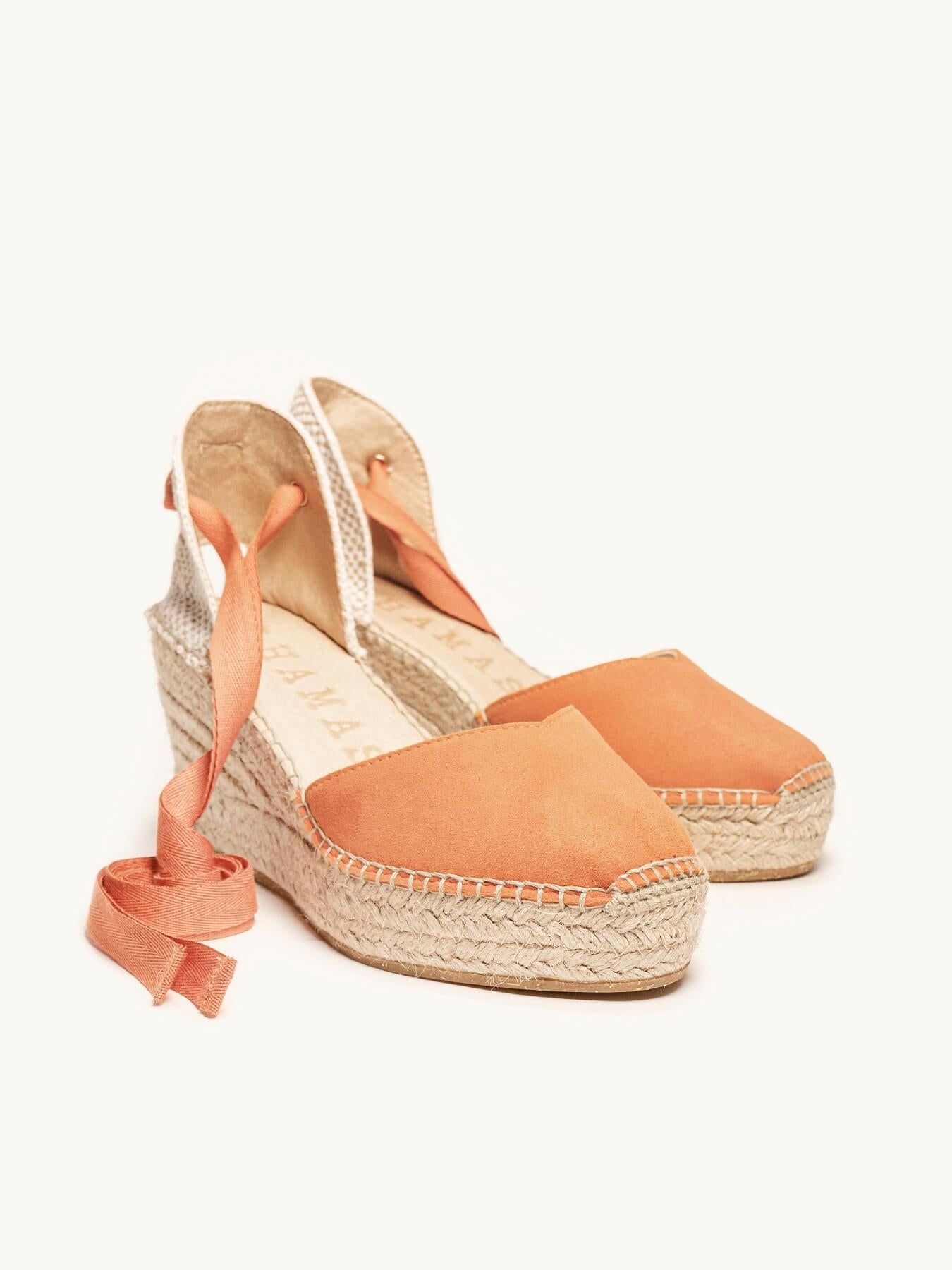 - Anabela de trança de juta natural com solado de borracha reciclada misturada com fibras naturais