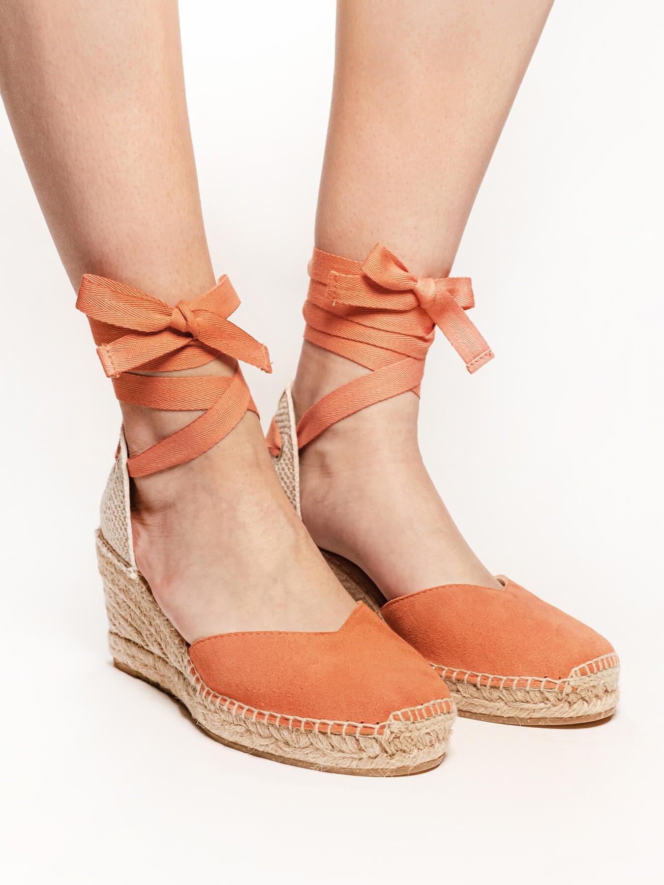 Sandália Anabela Média Romero Camurça Laranja