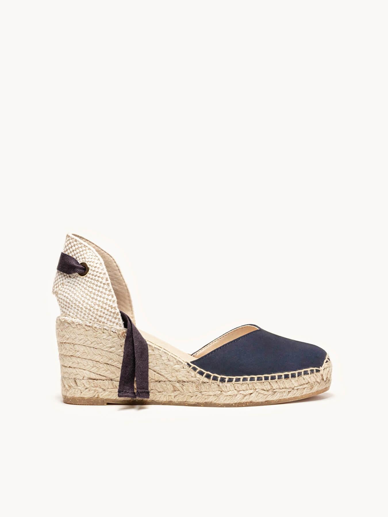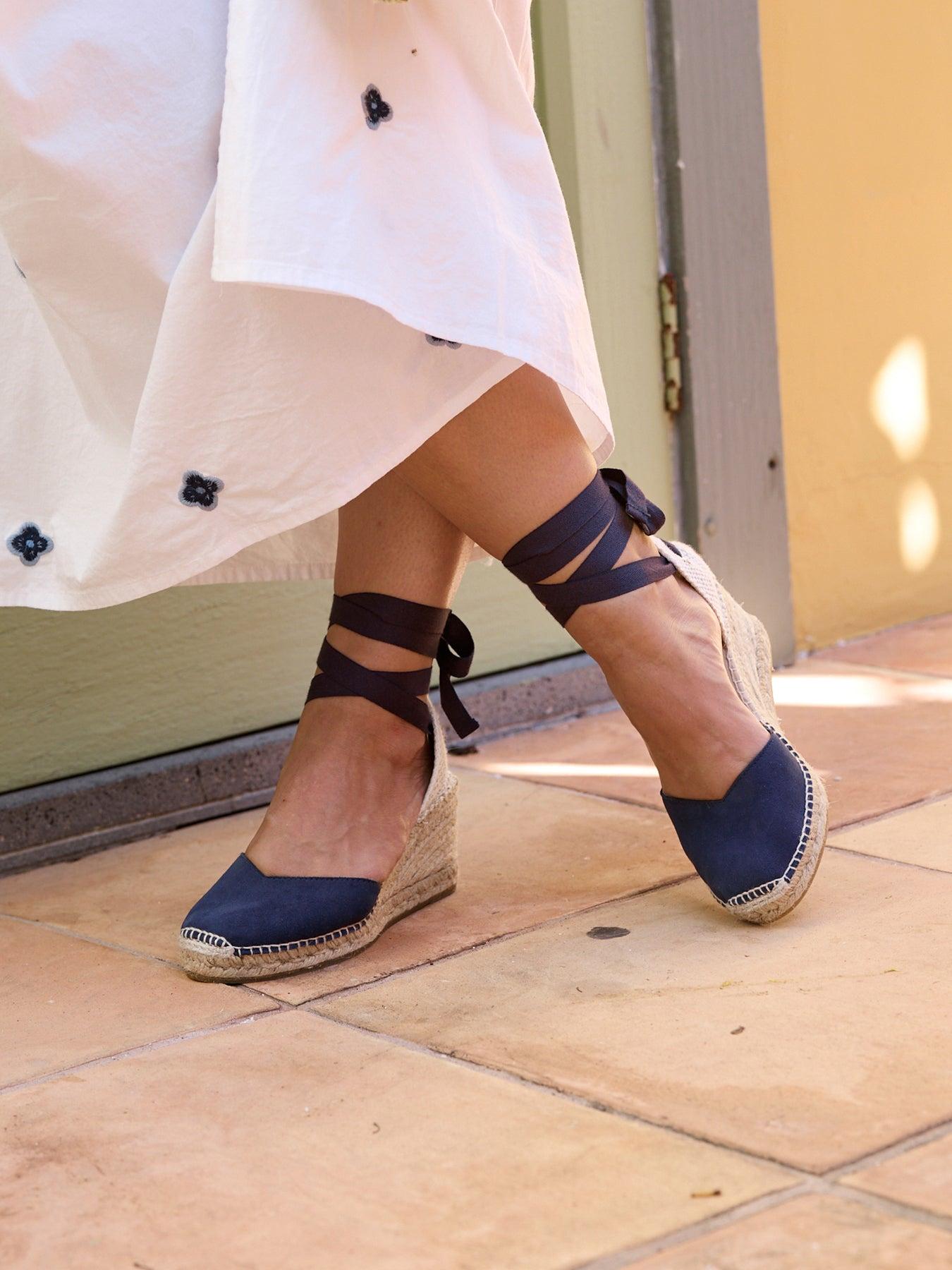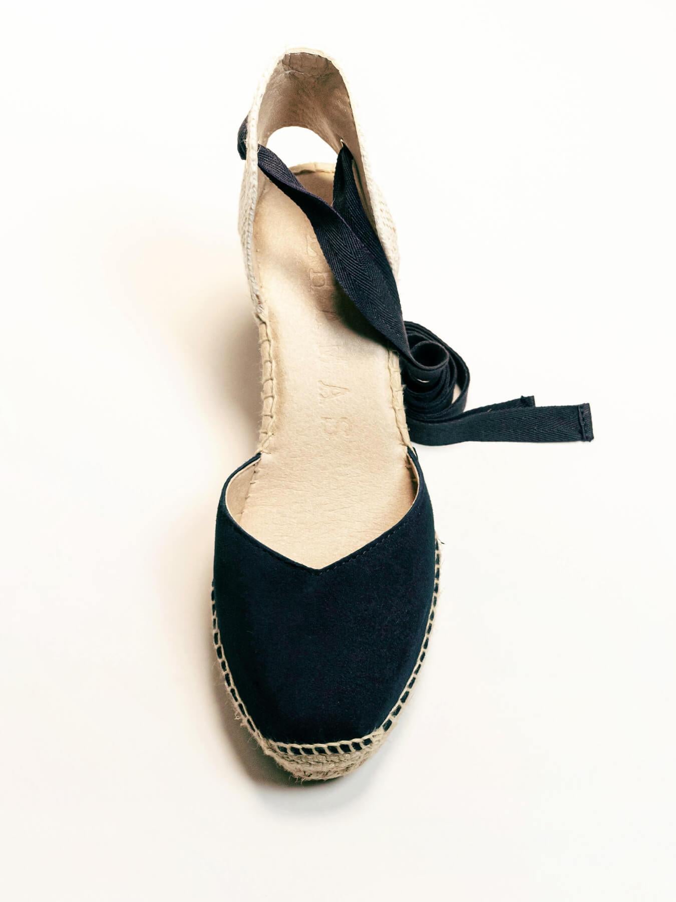 A sandália anabela média Romero é nosso modelo mais icônico. Uma sandália valenciana com decote coração e tiras que você poderá usar em looks especiais e também no dia a dia. Você pode dar um toque especial porque as tiras são intercambiáveis.