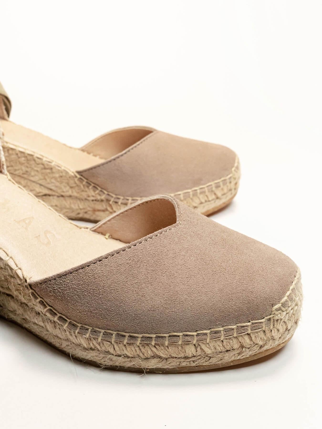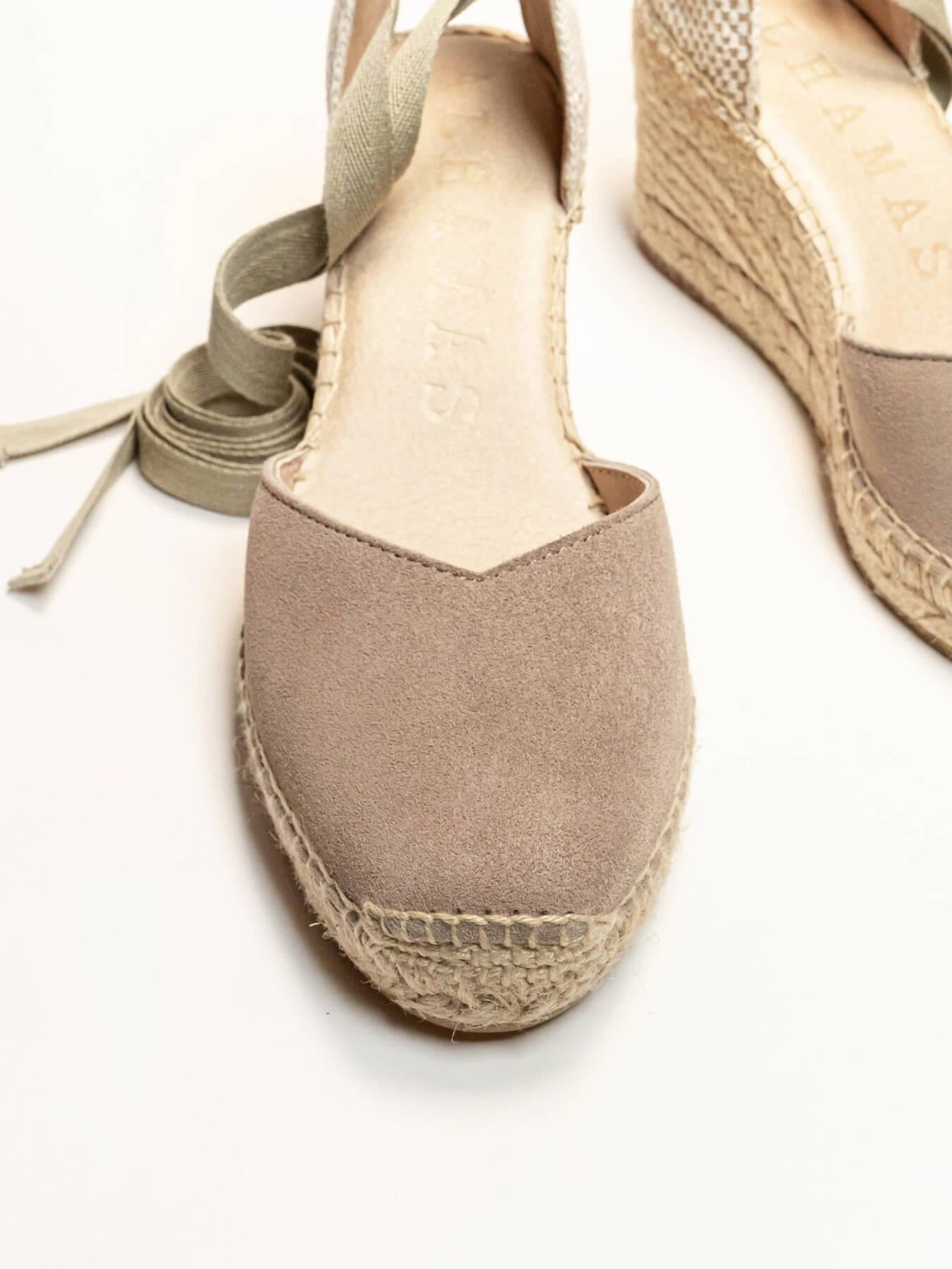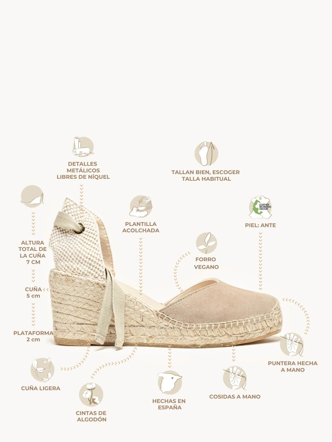 A sandália Romero anabela Média é o nosso modelo mais icônico. Uma sandália valenciana com decote coração e fitas que você poderá usar com seus looks especiais e também no dia a dia. Você poderá dar um toque especial porque as fitas podem ser trocadas.