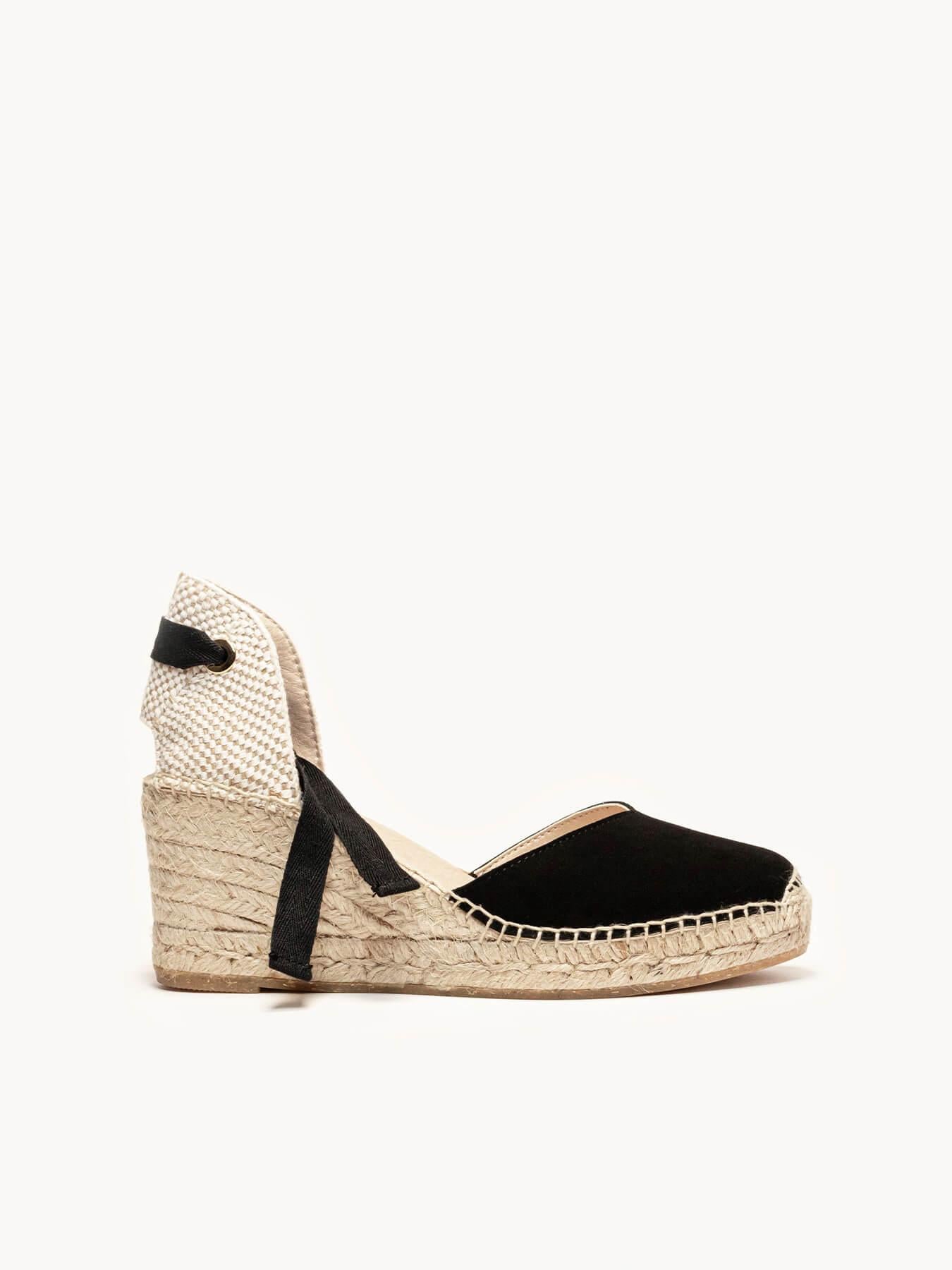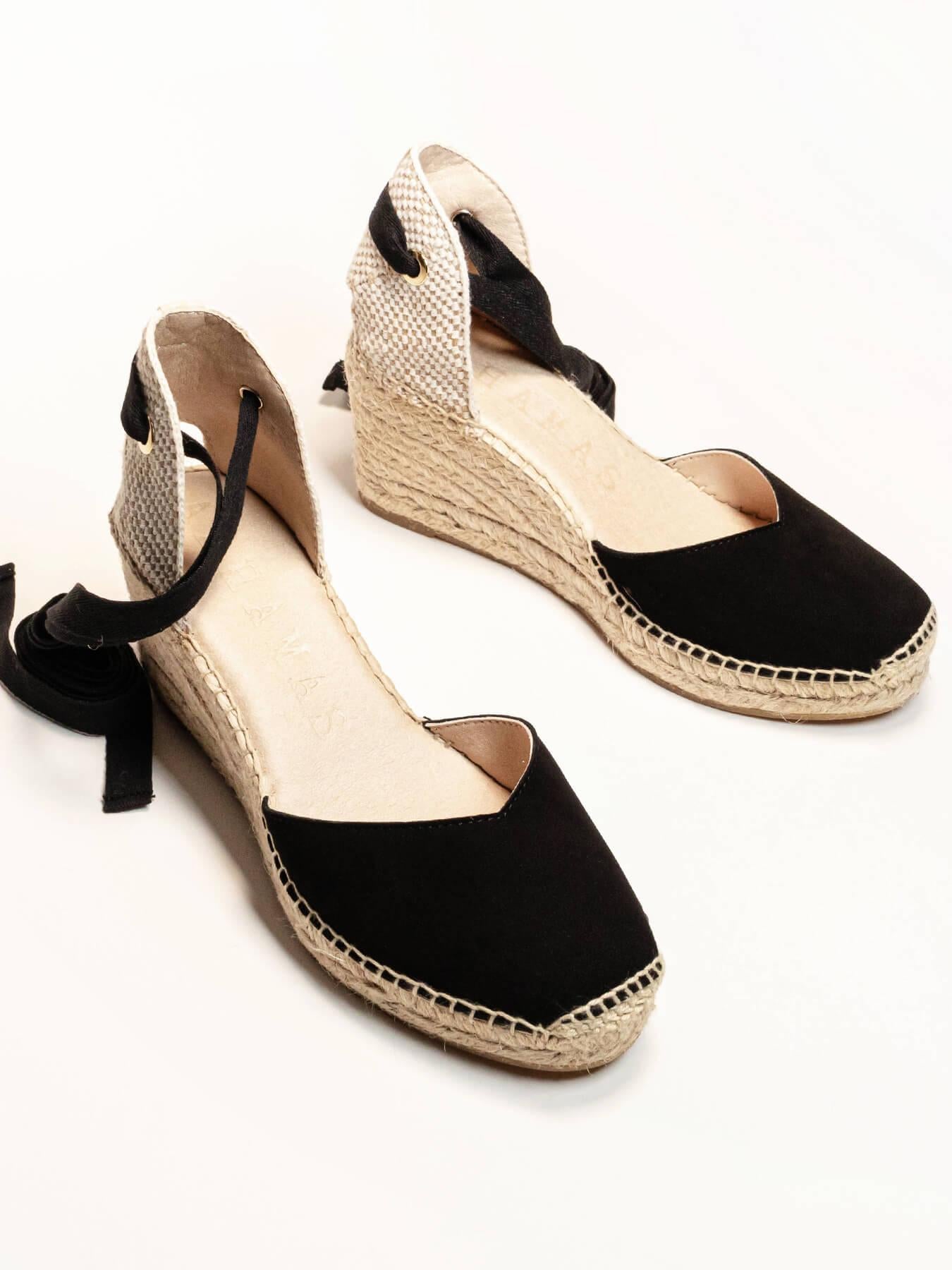 A alpargata de anabela média Romero é o nosso modelo mais icônico. Uma alpargata valenciana com decote coração e tiras que você pode usar com seus looks especiais e também no dia a dia. Você pode dar um toque especial porque as tiras podem ser trocadas.