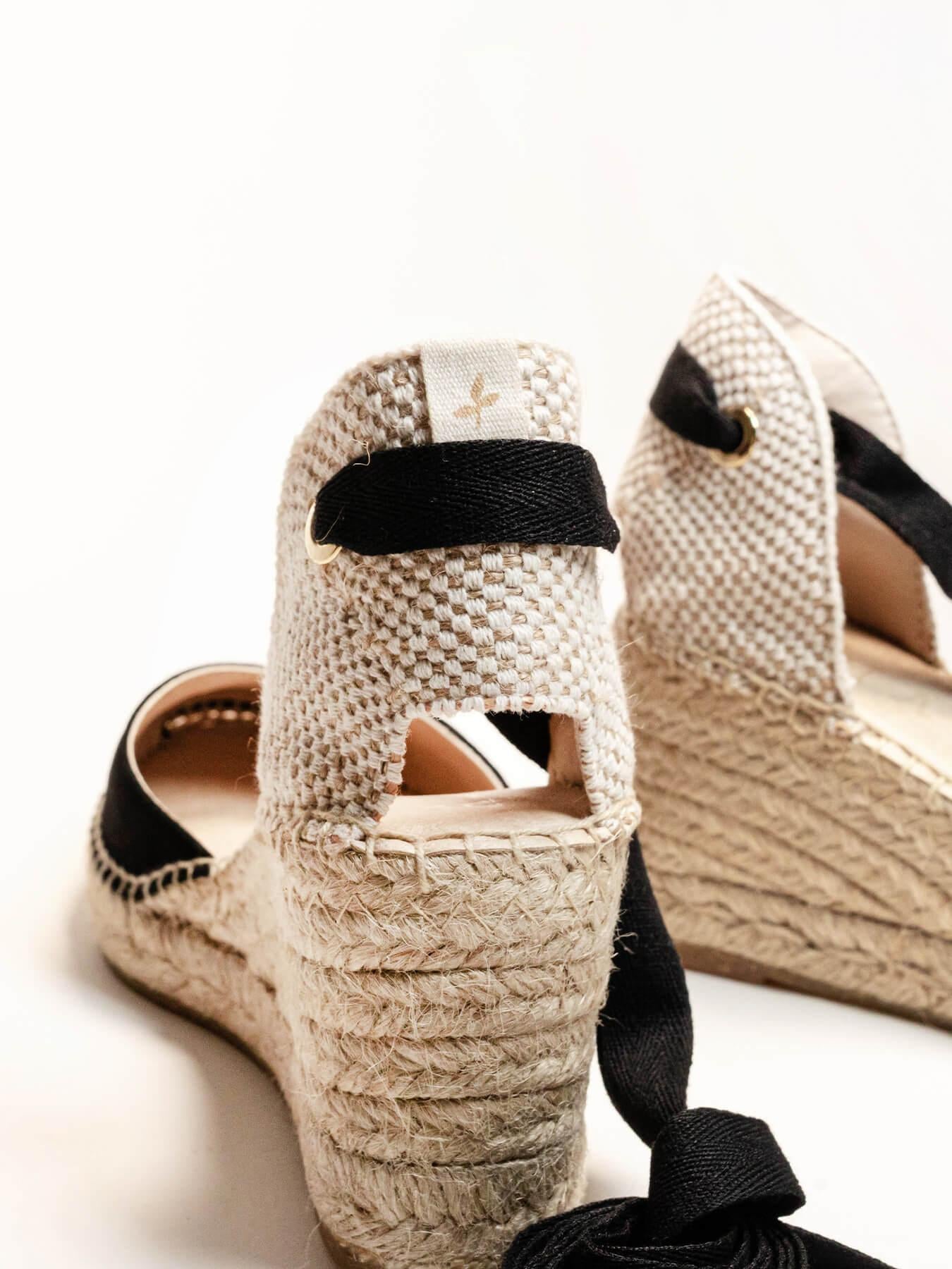 - Plataforma de trança de juta natural com sola de borracha reciclada misturada com fibras naturais.