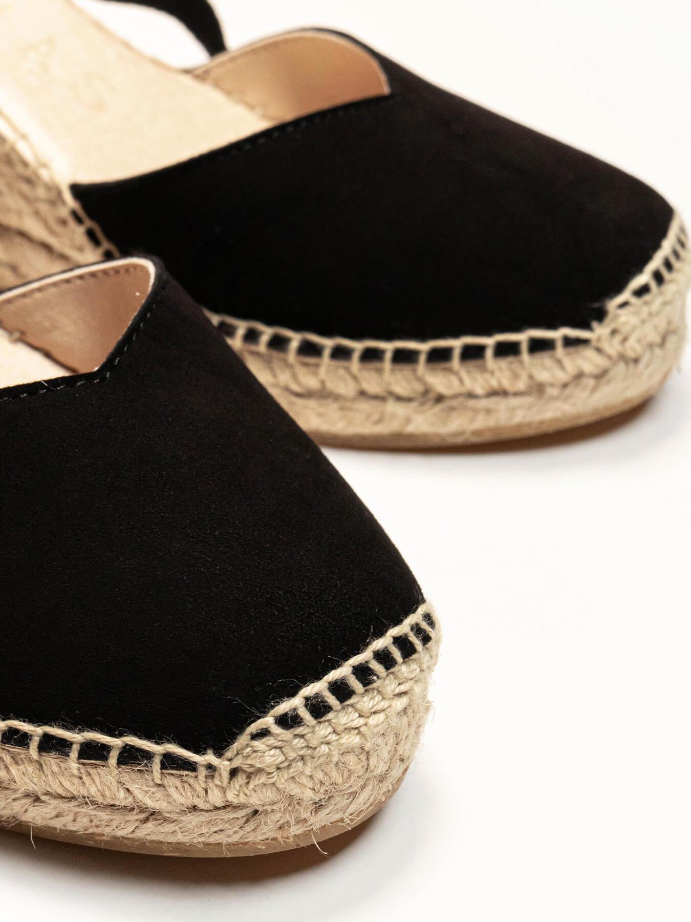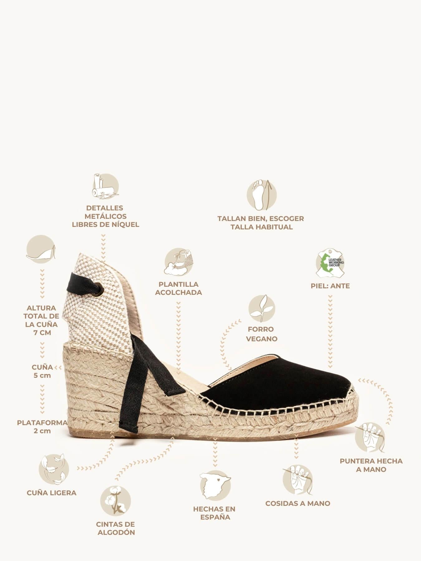- A camurça da sandália anabela Romero está certificada pelo Leather Working Group (uma organização que promove práticas ambientais sustentáveis)
