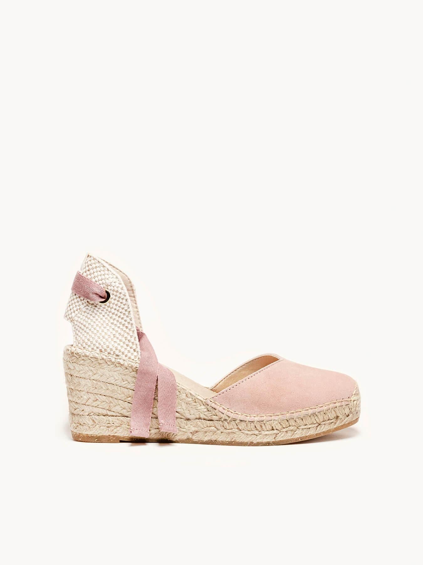 Sandália Anabela Média Romero Camurça Rosa Clara