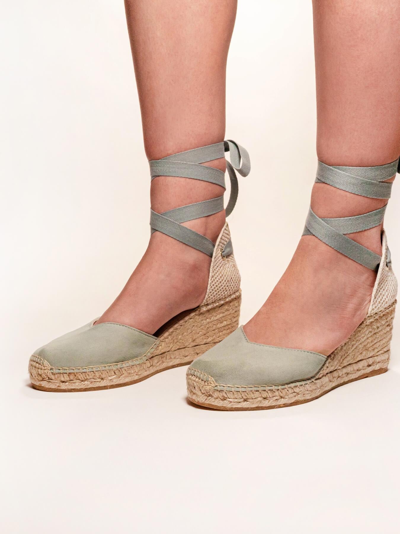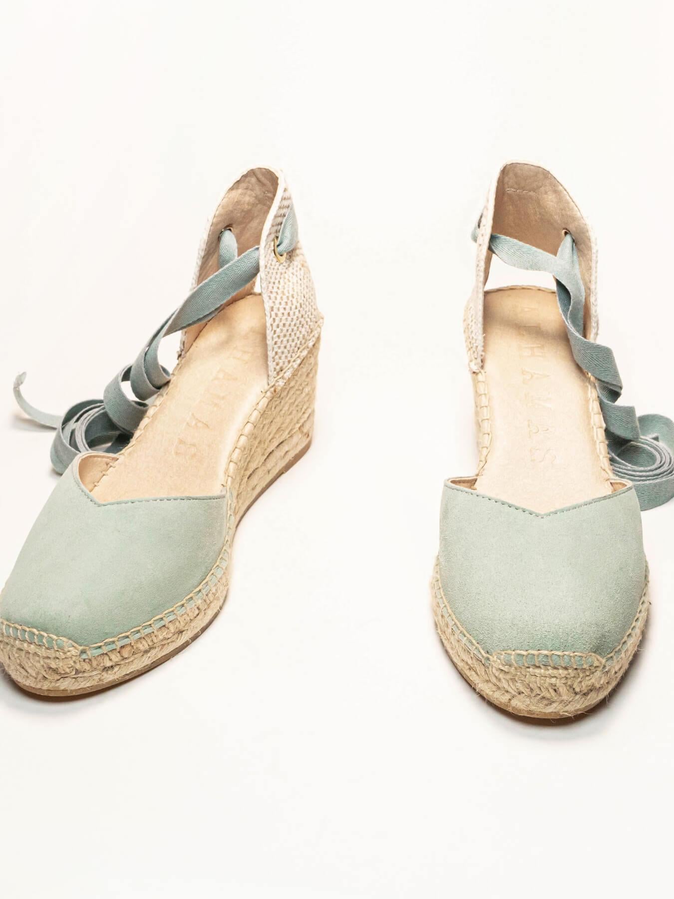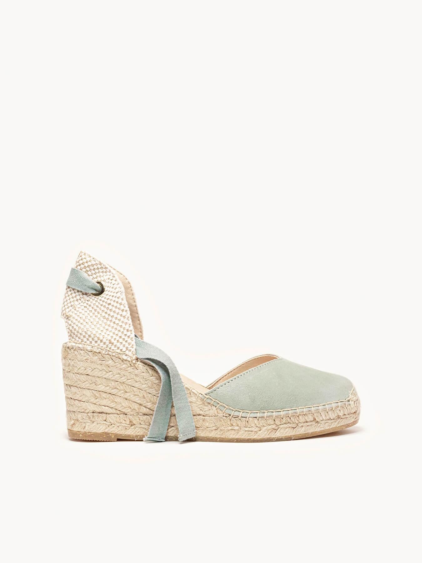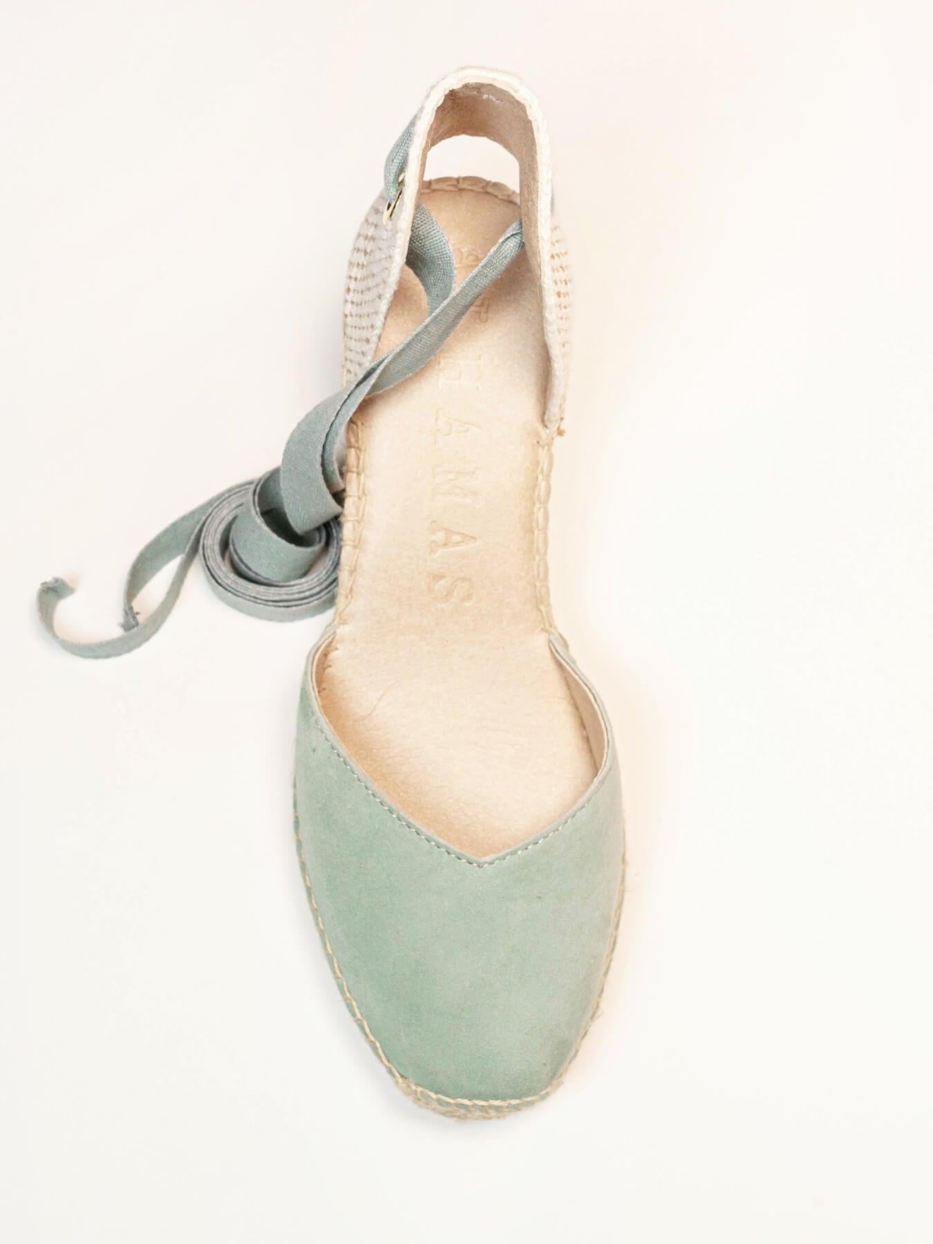 Sandália Anabela Média Romero Camurça Verde Claro