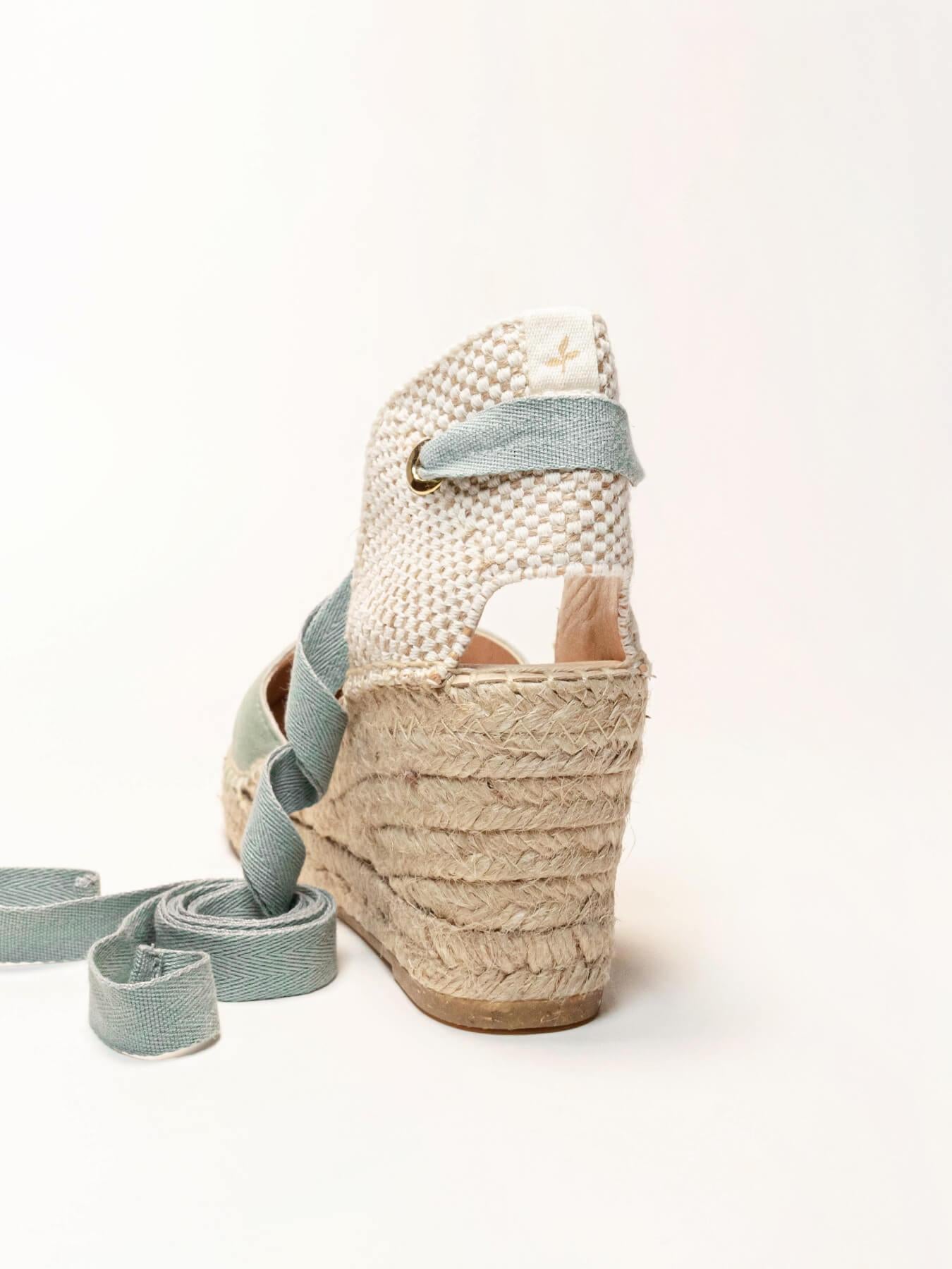 - Anabela de trança de juta natural com sola de borracha reciclada misturada com fibras naturais