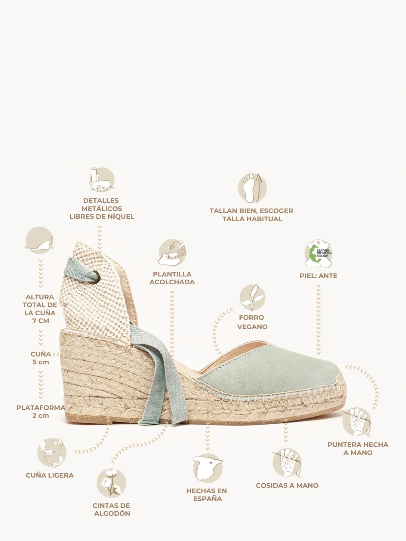 - A camurça da alpargata Romero está certificada pelo Leather Working Group (uma organização que promove práticas ambientais sustentáveis)