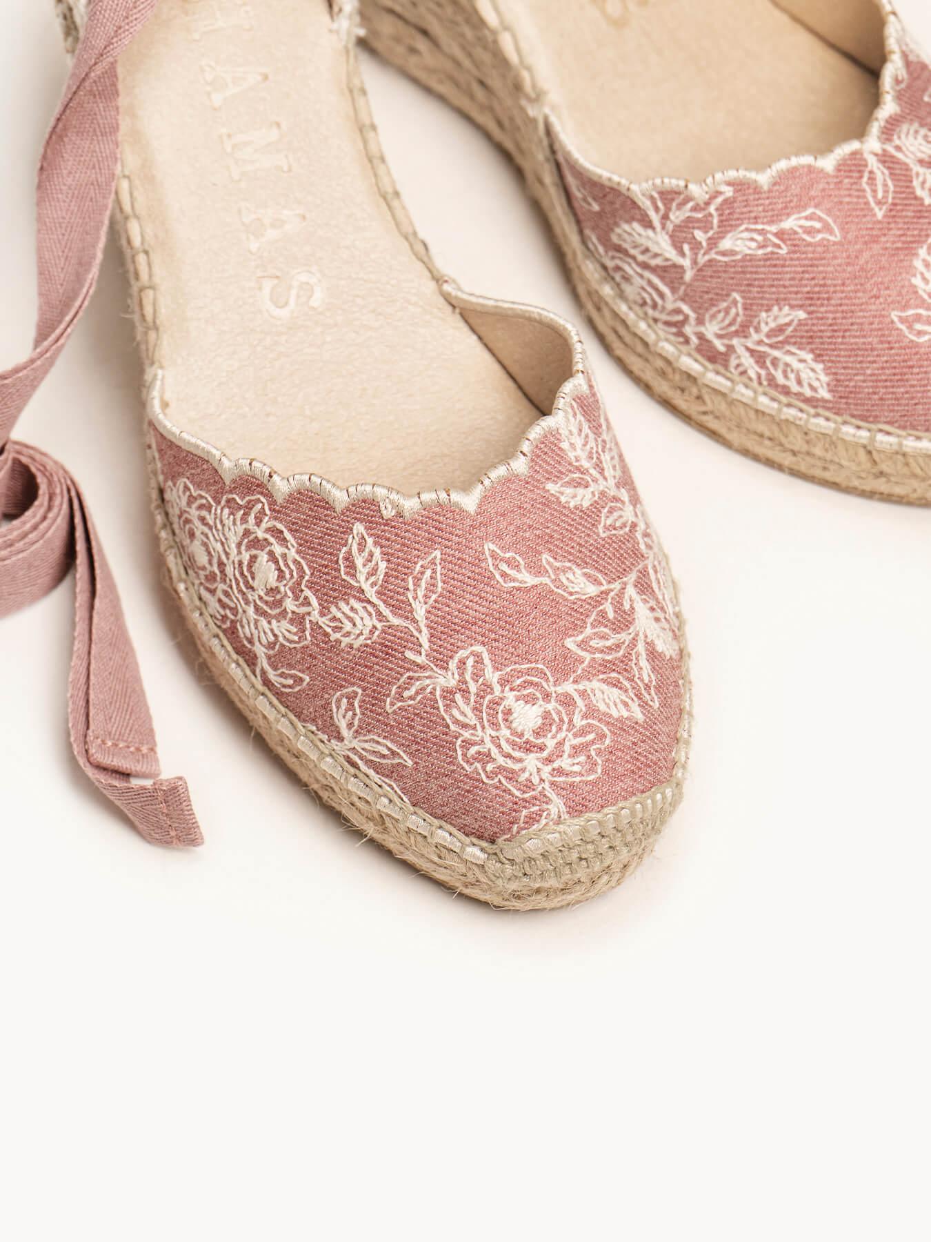 Sandália Anabela Média Romero Jeans Bordado Rosa