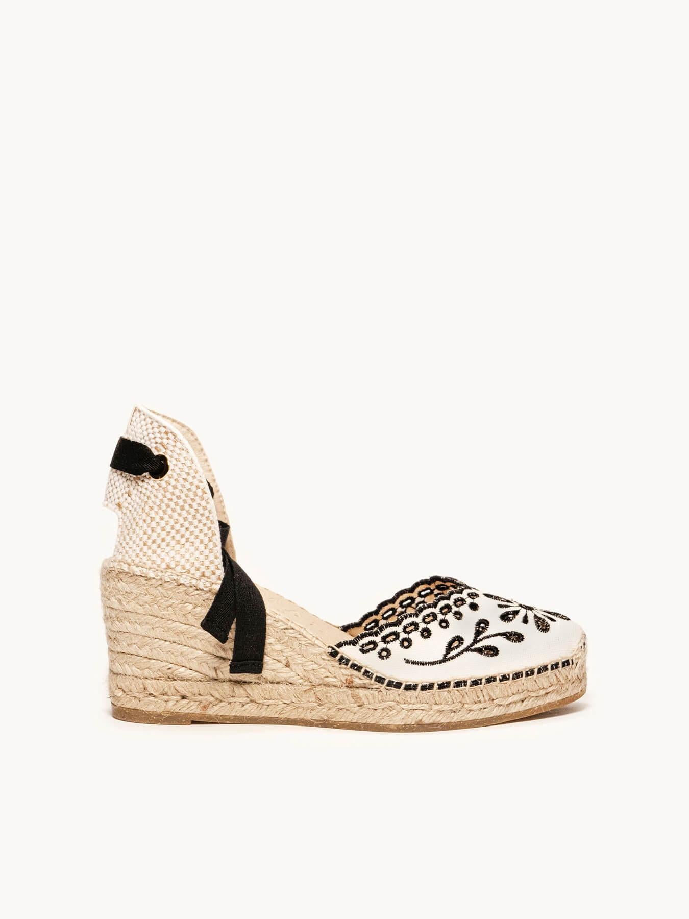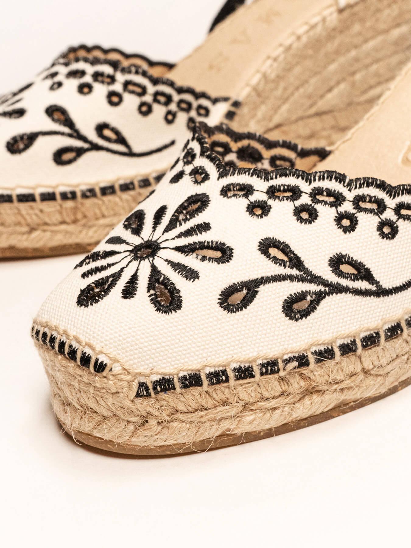 Sandália Anabela Média Romero Lona Bordada Preta