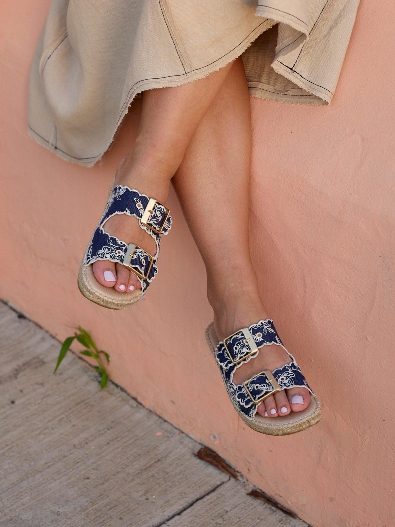 Sandália Papete Girasol Jeans Bordada Azul Marinho