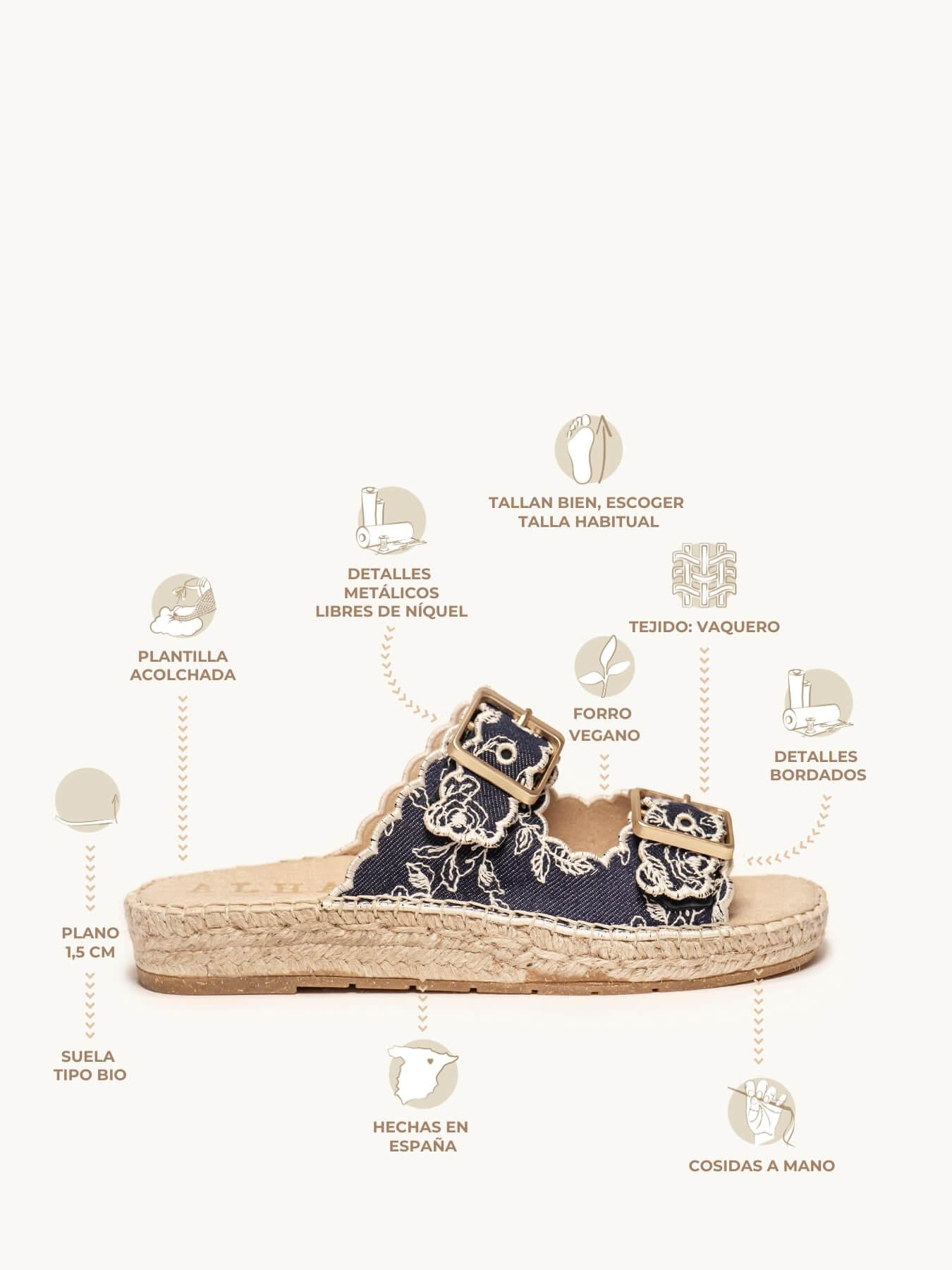 - Anabela de trança de Juta natural com sola de borracha reciclada misturada com fibras naturais.