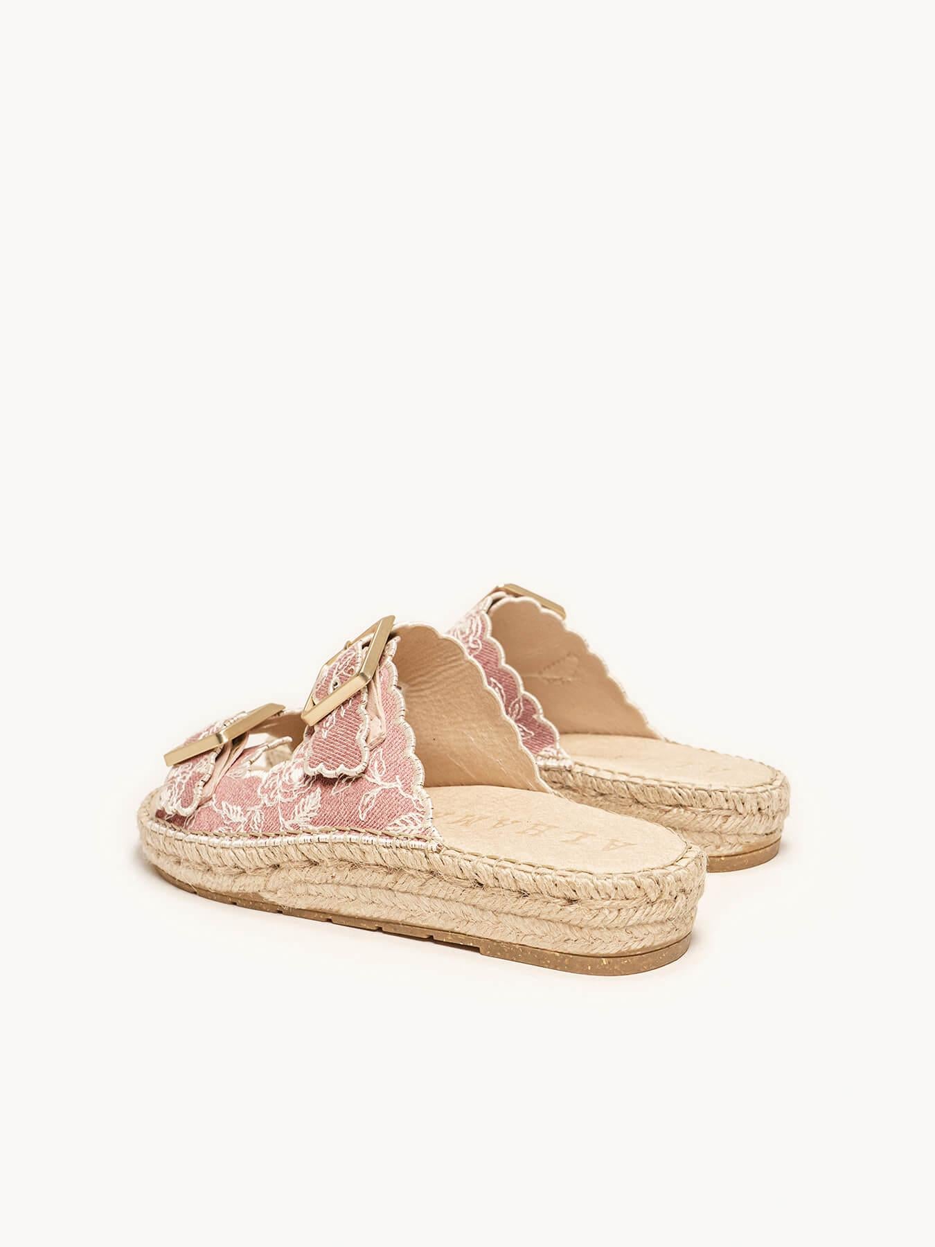 Sandália Papete Girasol Jeans Bordada Rosa