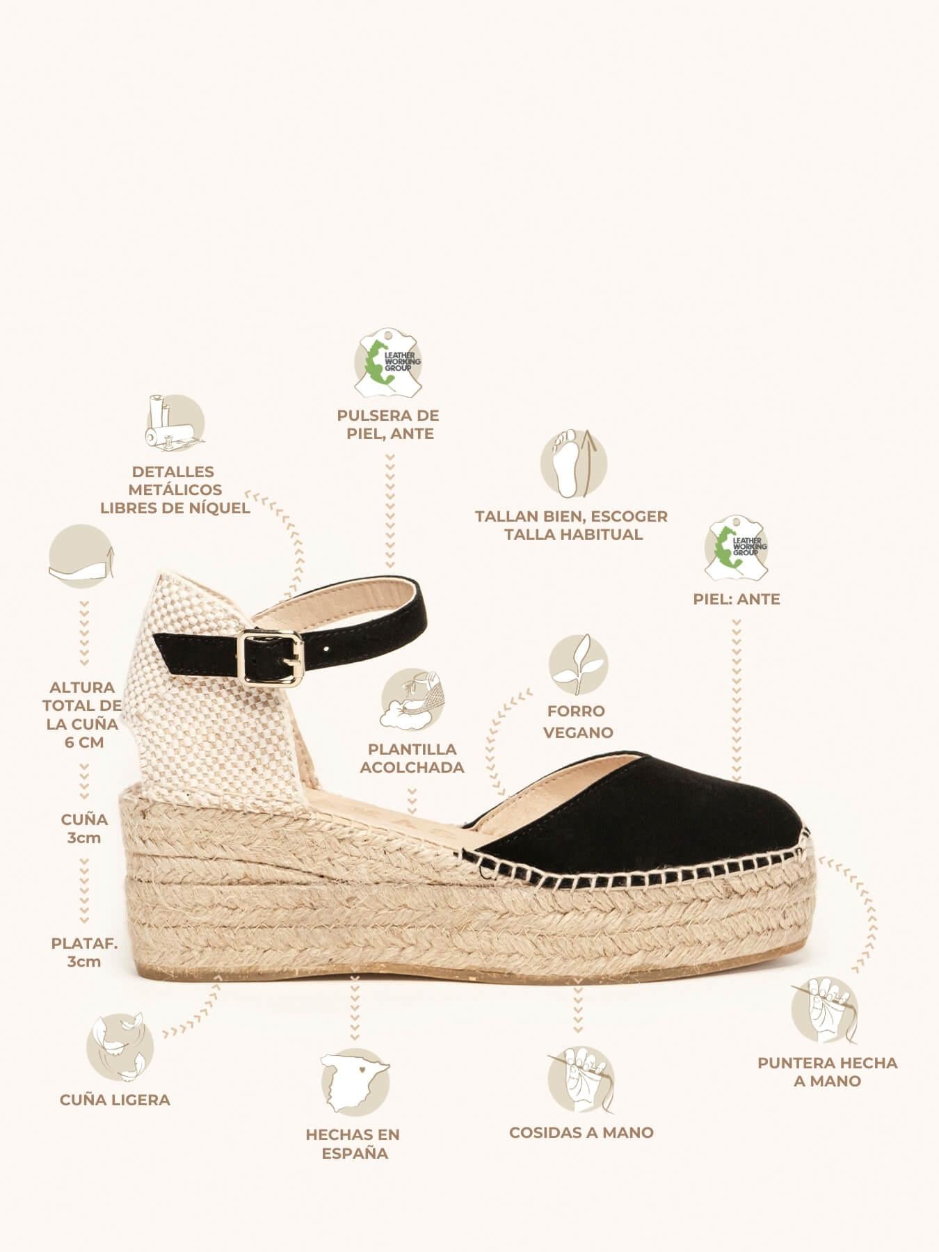 Alpargata Plataforma: 6 cm no total (3 cm de plataforma + 3 cm de salto).
