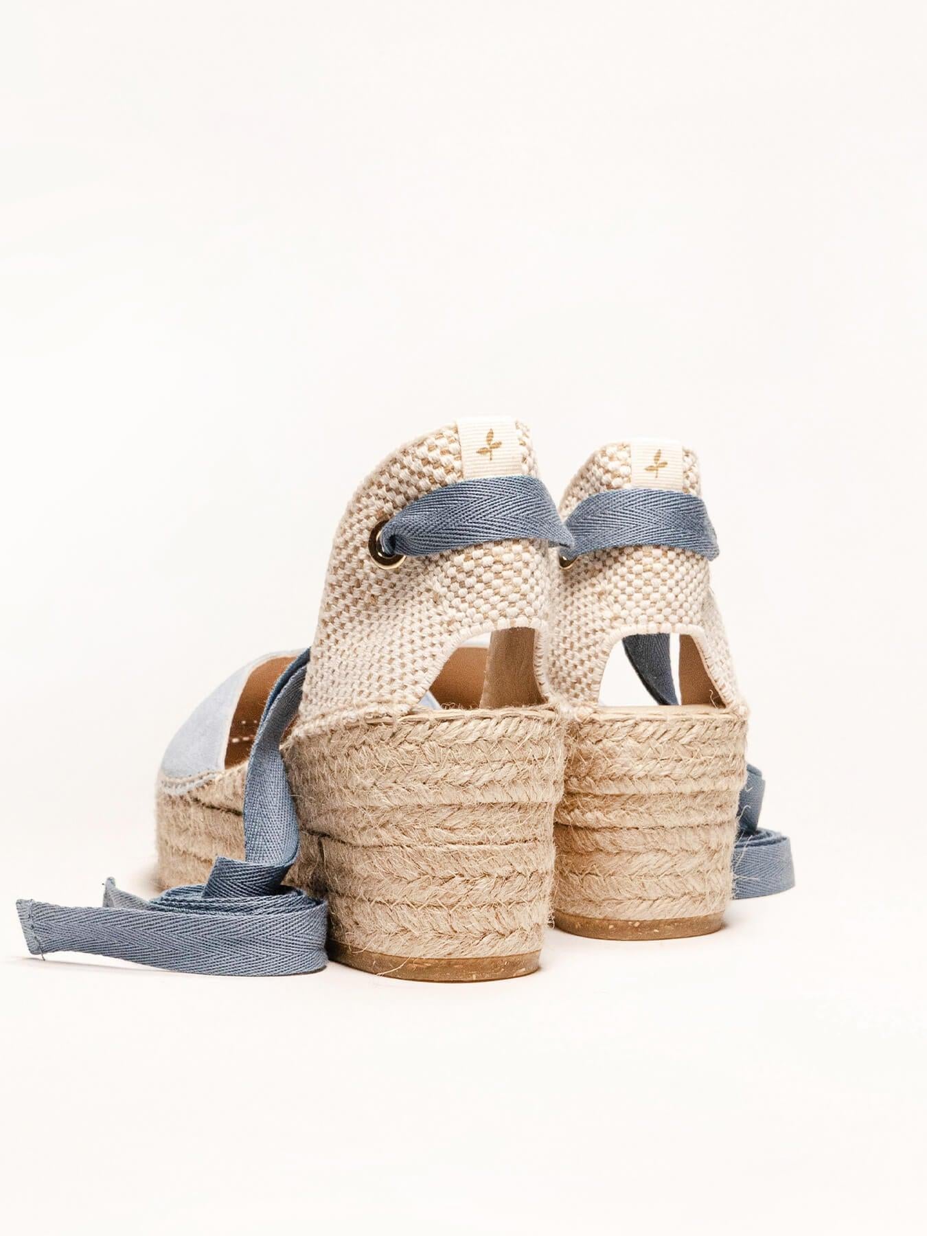- Anabela de trança de juta natural com sola de borracha reciclada misturada com fibras naturais