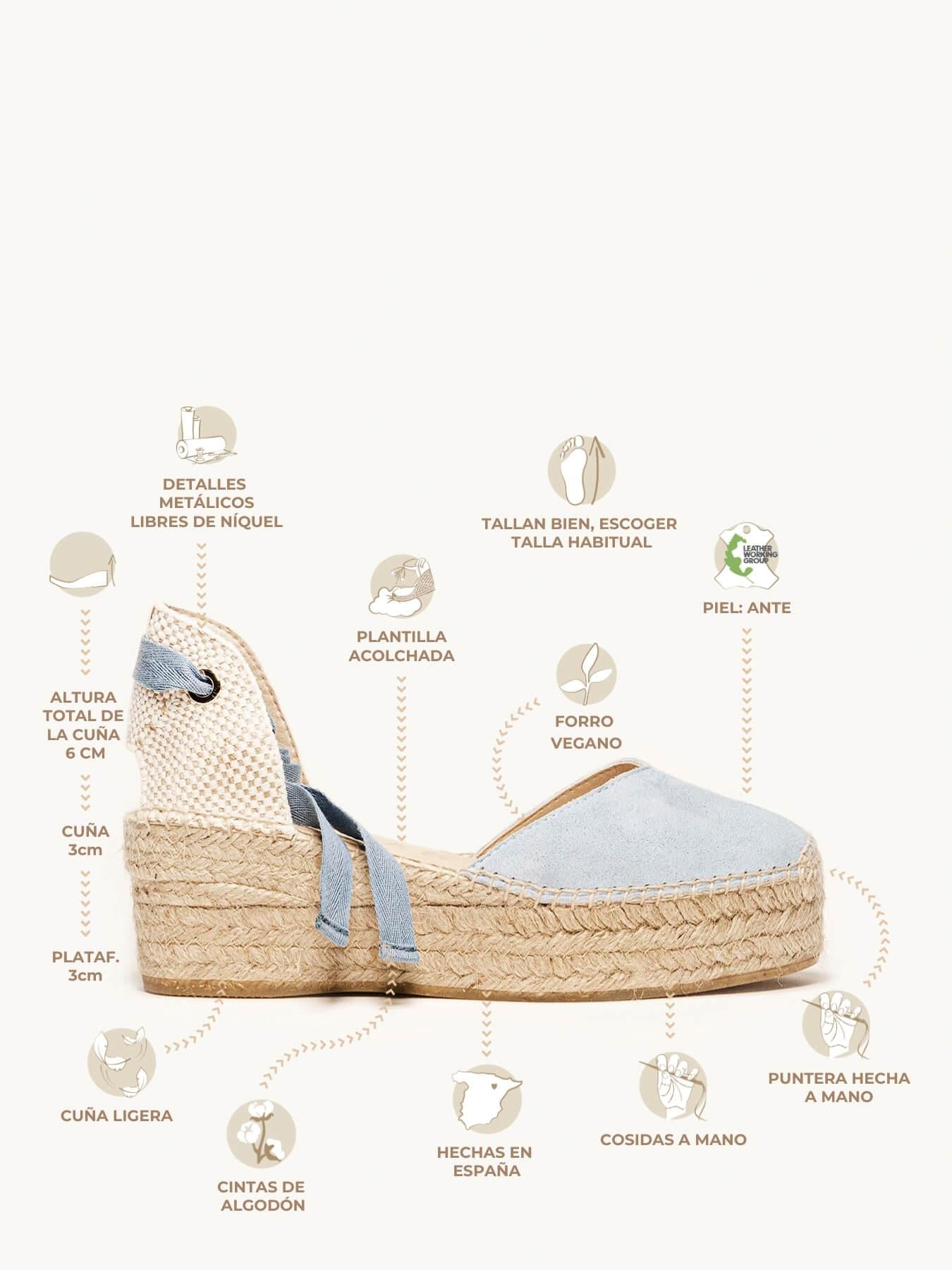 Alpargata Plataforma: 6 cm no total (3 cm de plataforma + 3 cm de salto).