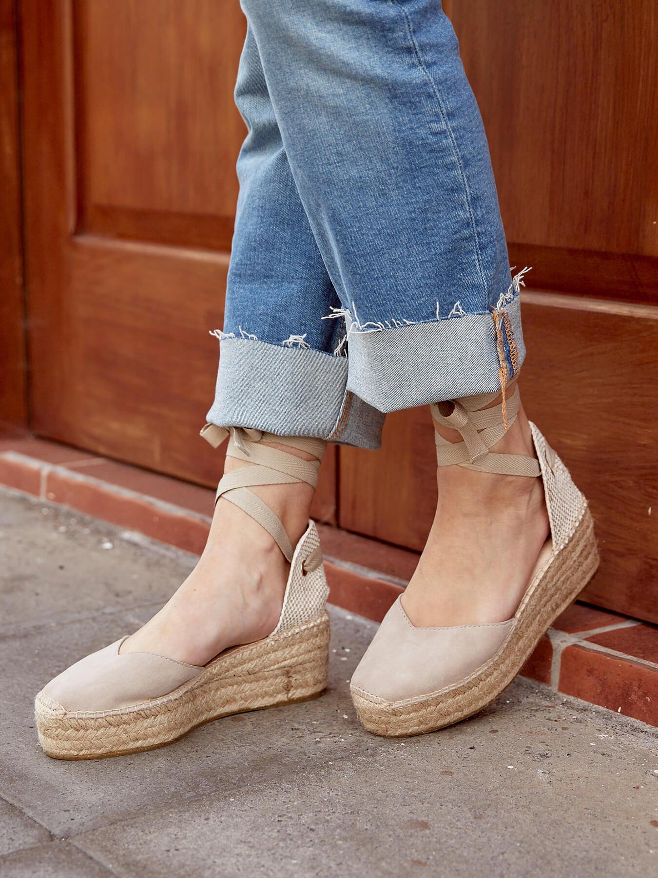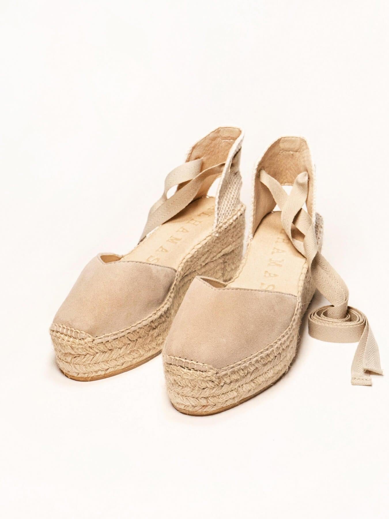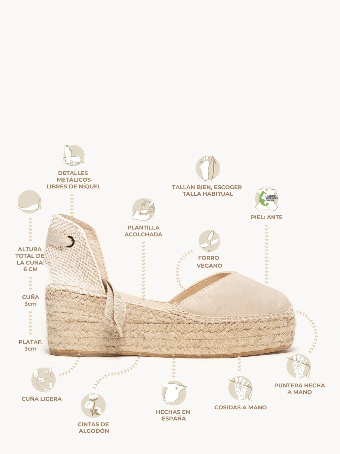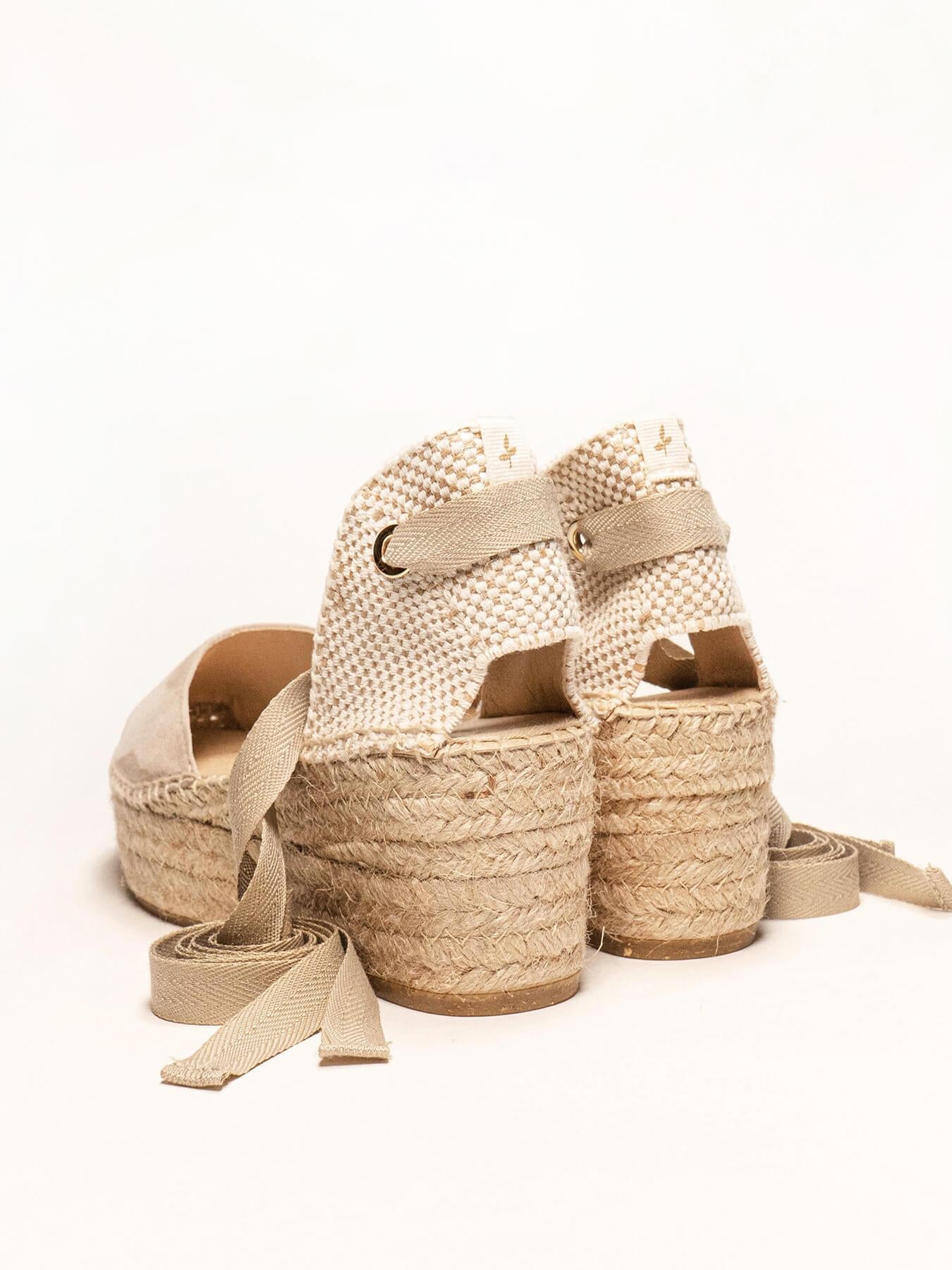 A sandália de anabela Romero é o nosso modelo mais icônico. Uma sandália valenciana com decote coração e fitas que poderá usar em looks especiais e também no dia a dia. Pode dar um toque especial porque as fitas podem ser trocadas.